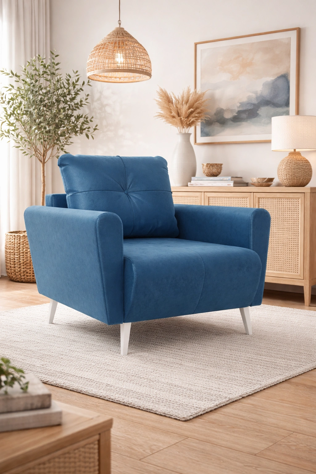 Křeslo Felice v modré barvě je stylový kus nábytku, který promění vzhled každého interiéru.