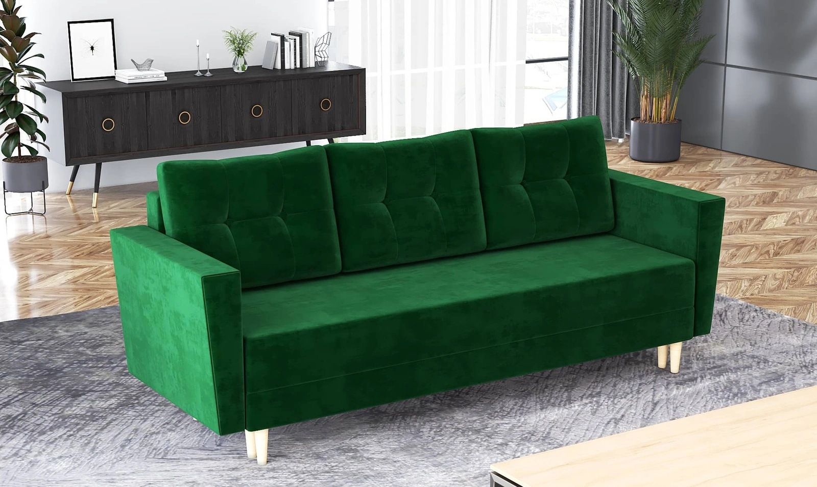 Rozkládací pohovka Telsze láhev zelená elegantní pohovka do obývacího pokoje ve skandinávském tvaru dřevěné vysoké nohy kontejner na lůžkoviny