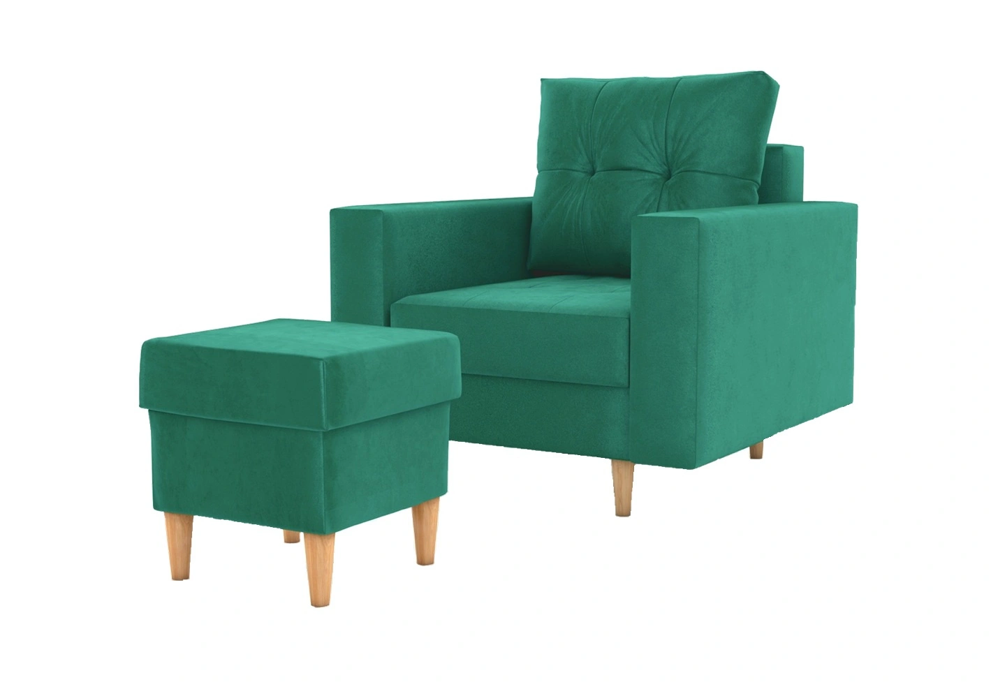 Křeslo s podnožkou Vaso láhev zelená pohodlné křeslo do obývacího pokoje ve skandinávském stylu měkký sedák vysoké dřevěné nohy
