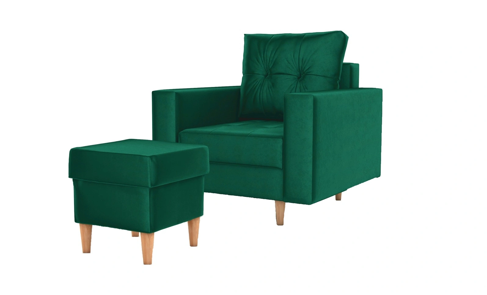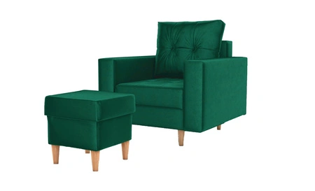Křeslo s podnožkou Vaso láhev zelená pohodlné křeslo do obývacího pokoje ve skandinávském stylu měkký sedák vysoké dřevěné nohy
