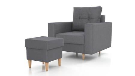 Křeslo s podnožkou Vaso grafitové pohodlné křeslo do obývacího pokoje ve skandinávském stylu měkký sedák vysoké dřevěné nohy