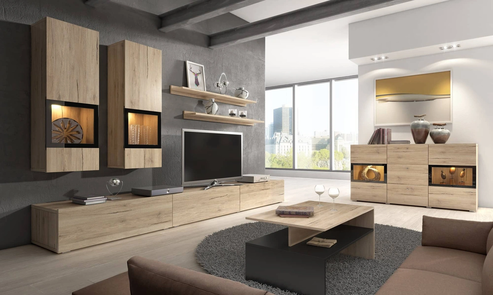 Čtyři barevné varianty: lesklá bílá, san remo ve světlém mořidle, moderní světlý beton a schiefer. Vložky dvířek komody jsou vyrobeny z čirého tvrzeného skla, které je na okrajích lakováno černou barvou. Dvířka komody nemají viditelné úchytky, takže komoda vypadá větší.