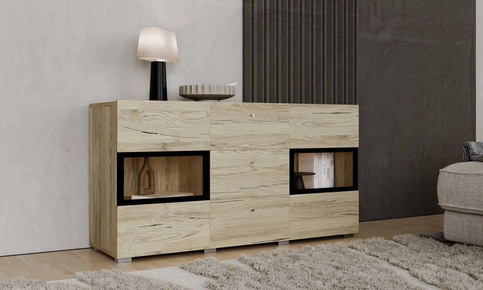 Komoda je vyrobena z vysoce kvalitní laminované desky a má válečkové výsuvy zásuvek.