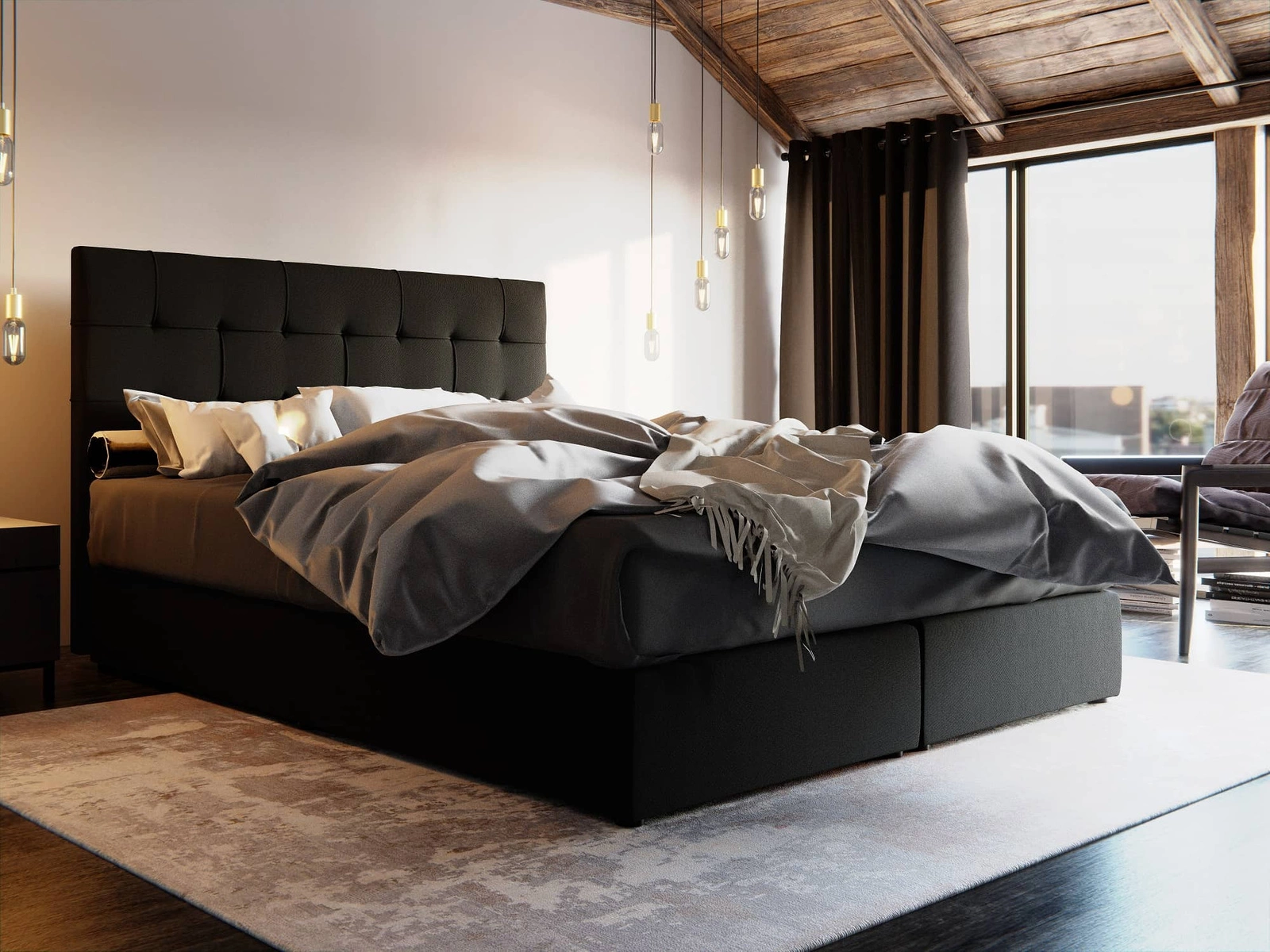 Kontinentální postel Widnes v černé barvě je ideálním řešením pro ložnice zařízené v moderním, skandinávském i klasickém stylu.
