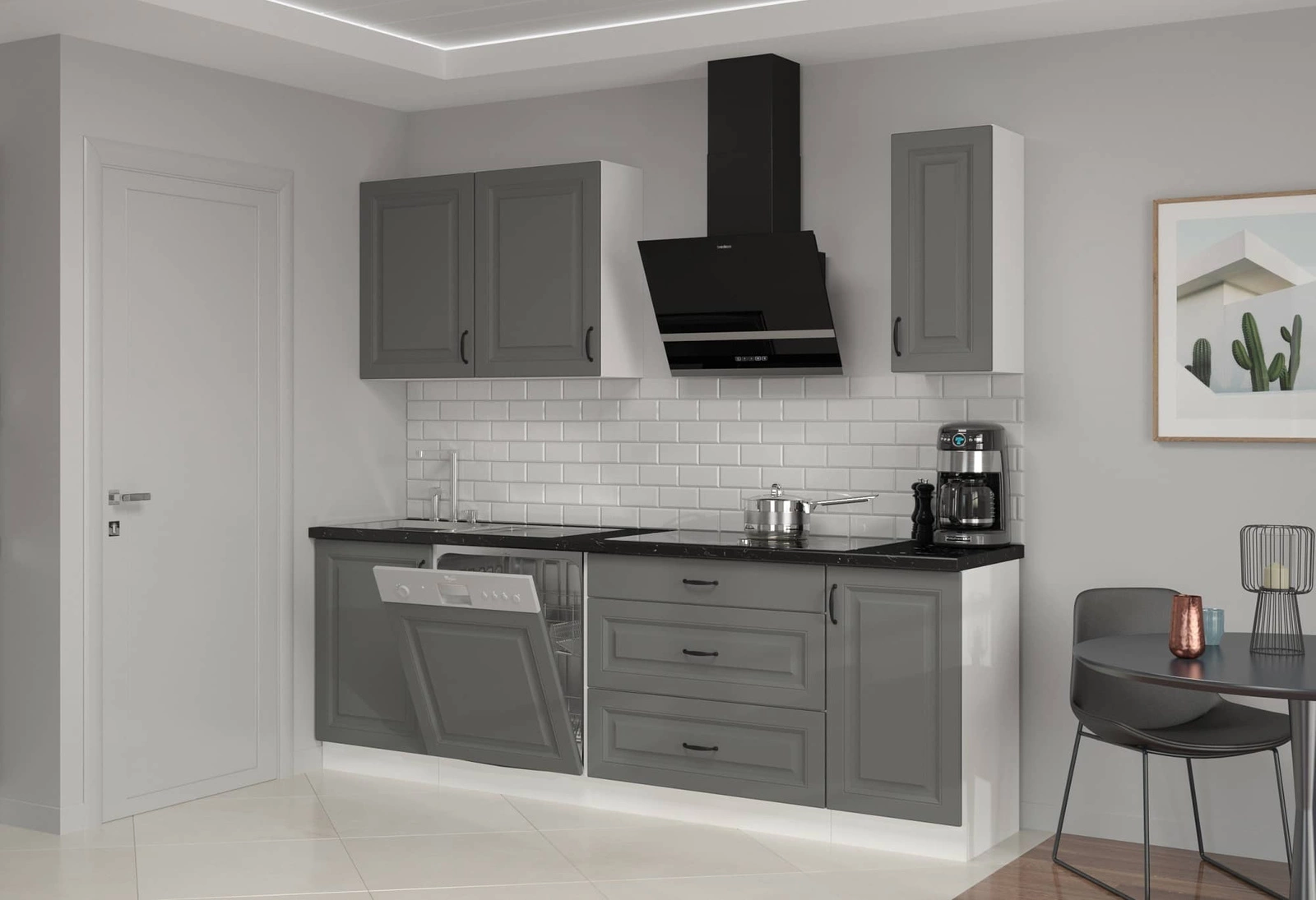 Zestaw mebli kuchennych Tilos 230 cm szafki doskonale prezentują się we wnętrzach skandynawskich klasycznych i nowoczesnych