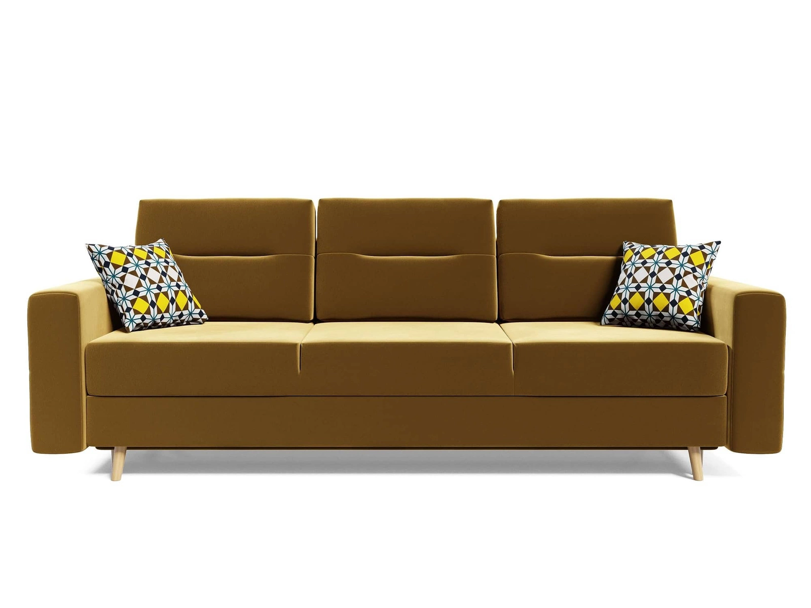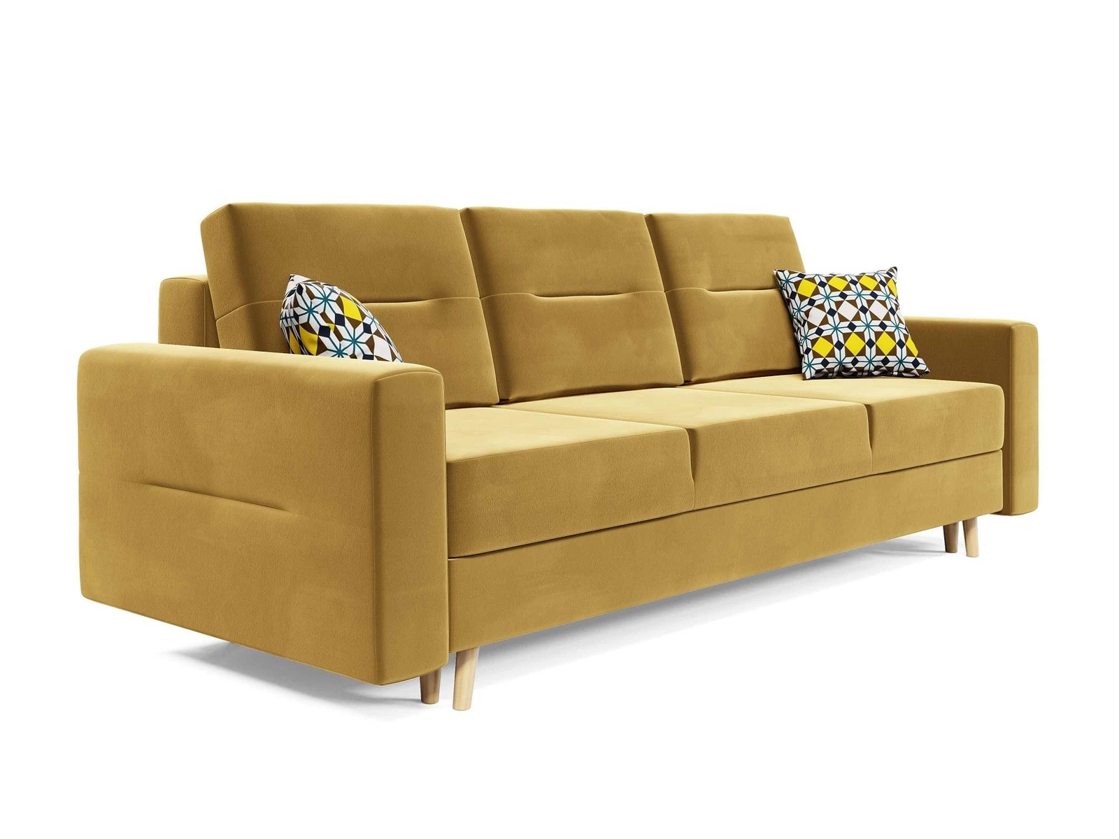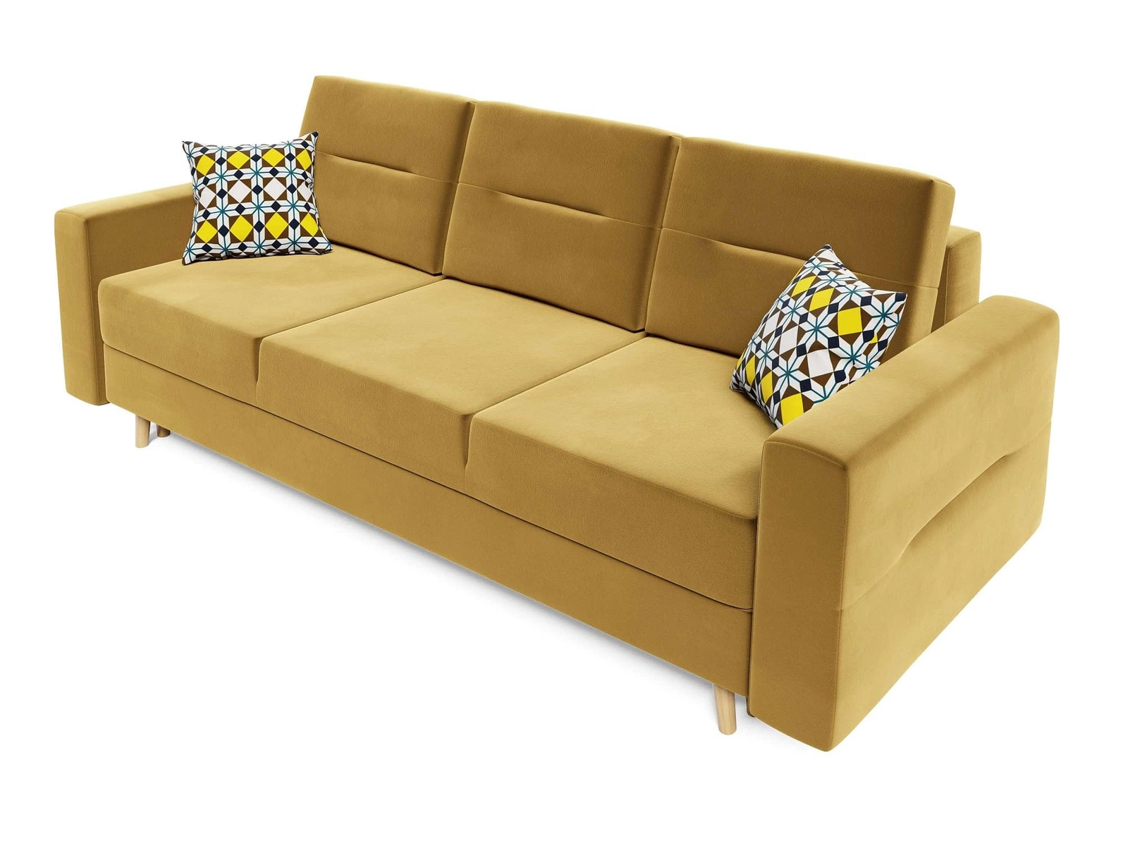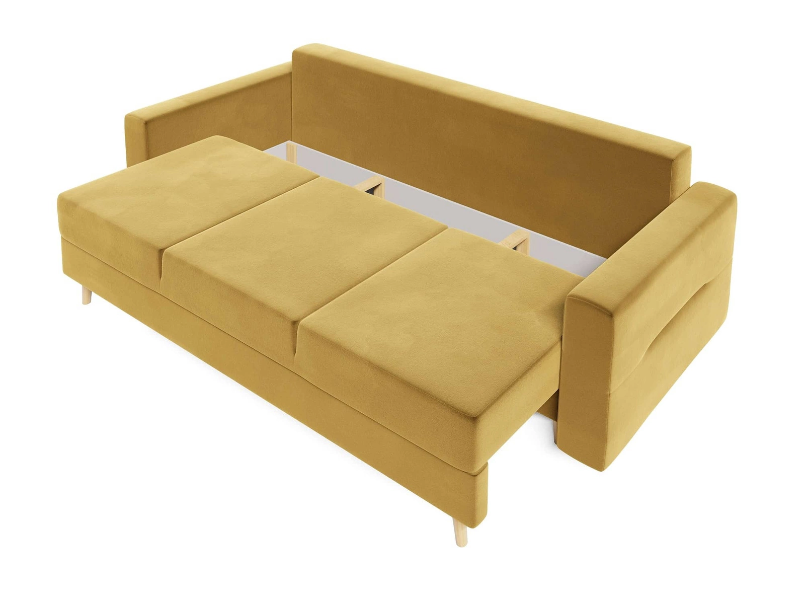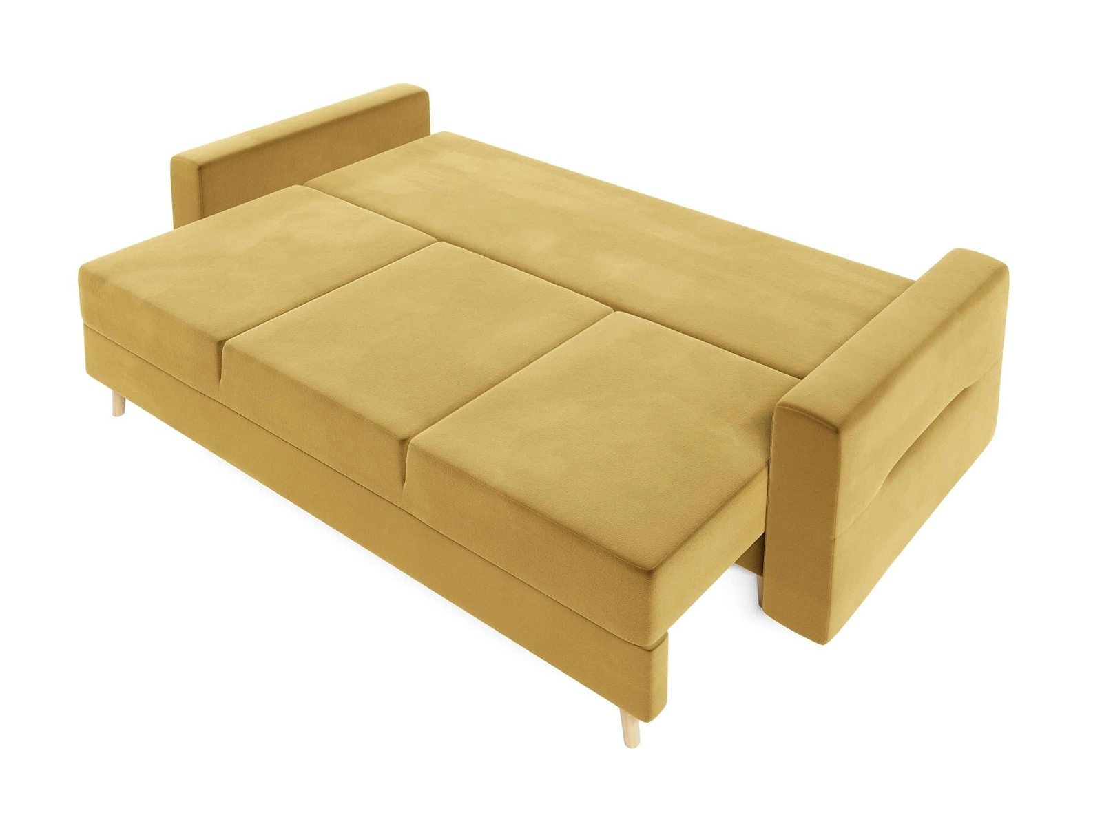 Hořčicová pohovka Bristol s funkcí spaní dokonale zapadne do každého interiéru a poskytne pohodlné místo na spaní v tradičním a skandinávském stylu