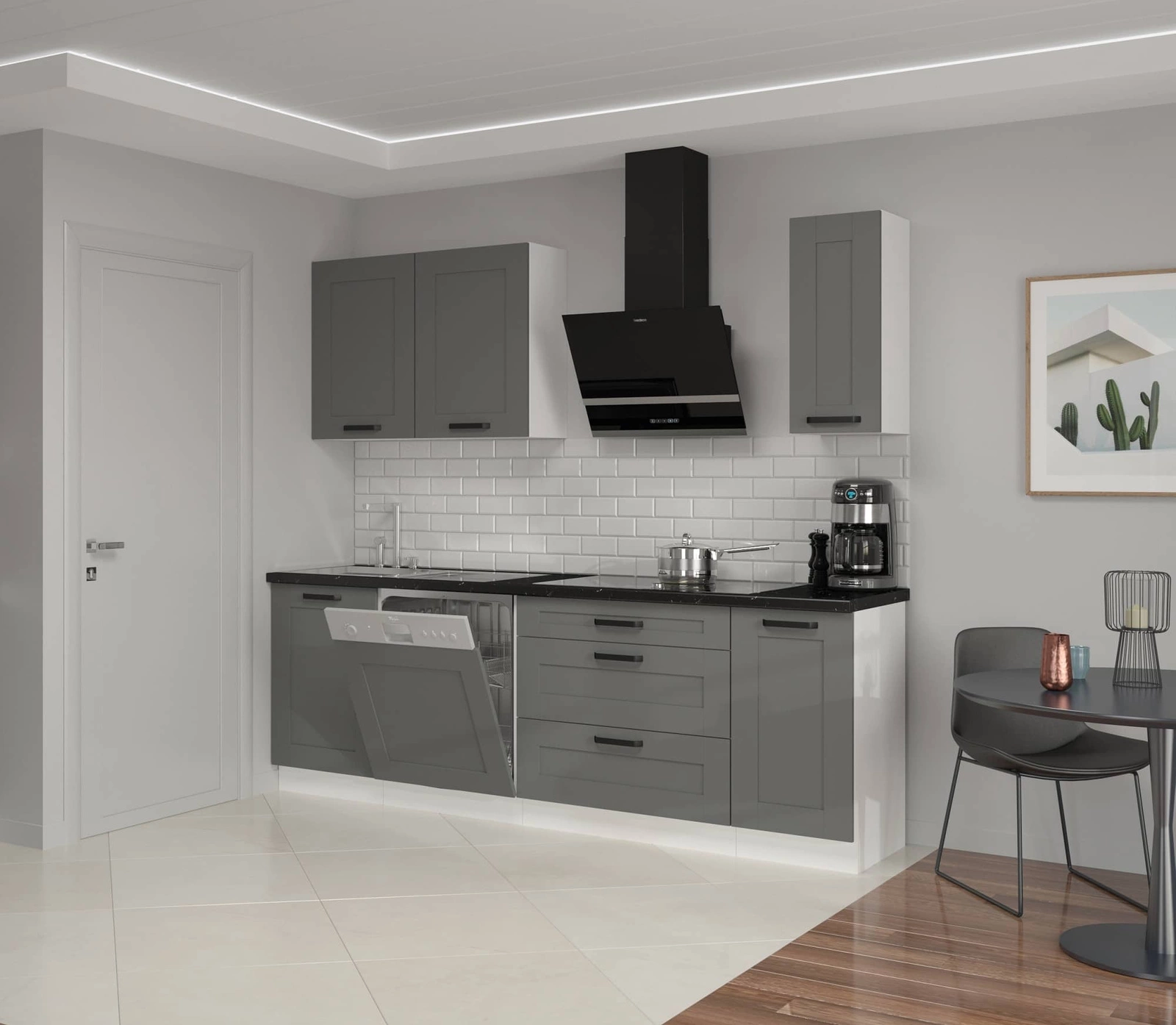 Sada kuchyňského nábytku Avola 230 cm skříňky vypadají skvěle v moderních i klasických interiérech