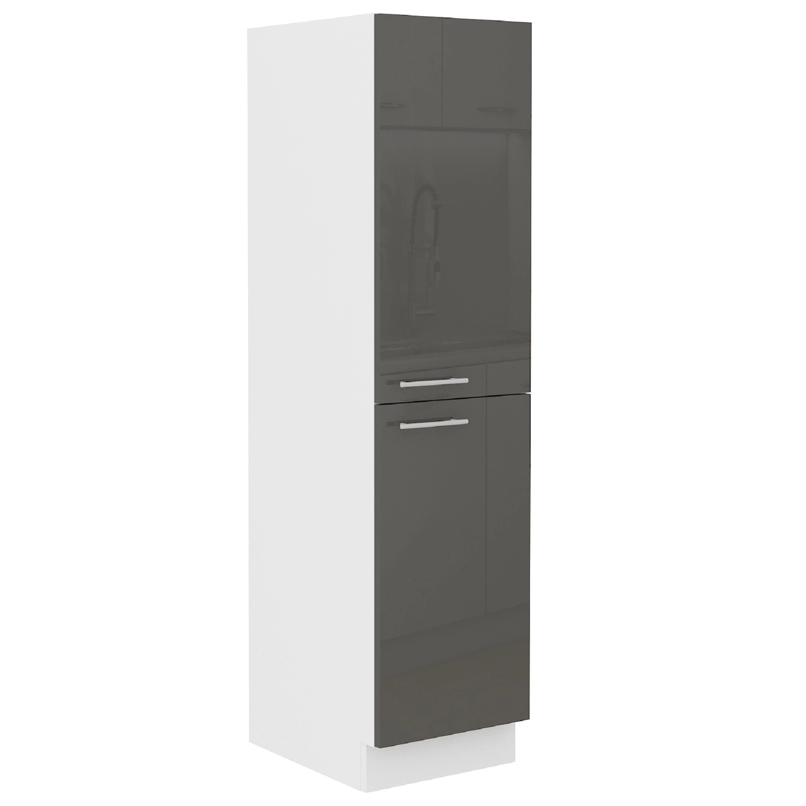 Přední strana šedé kuchyňské skříňky je vyrobena ze nábytkové desky a přikryté fólií v lesklé. Přední hrany jsou chráněny dýhou ABS, která má dvě funkce. Je to zabezpečení proti vlhkosti a chrání proti náhodnému poškození.