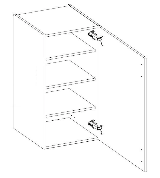 Kuchyňská horní skříňka je dodávána v prvcích, které jsou zabaleny v pětivrstvé lepenkové krabici. Veškeré kování potřebné k montáži, tj. šrouby, vruty, hmoždinky, panty, úchytky, zátky, je přibaleno společně s komponenty kuchyňské skříňky.