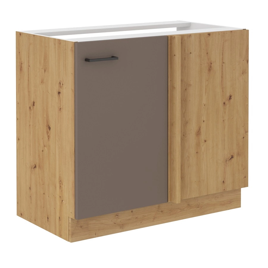 Stojící rohová kuchyňská skříňka Rimini v barvě lanýžově šedá / dub artisan patří do kategorie modulárního kuchyňského nábytku, ze kterého lze vytvořit libovolnou sestavu.