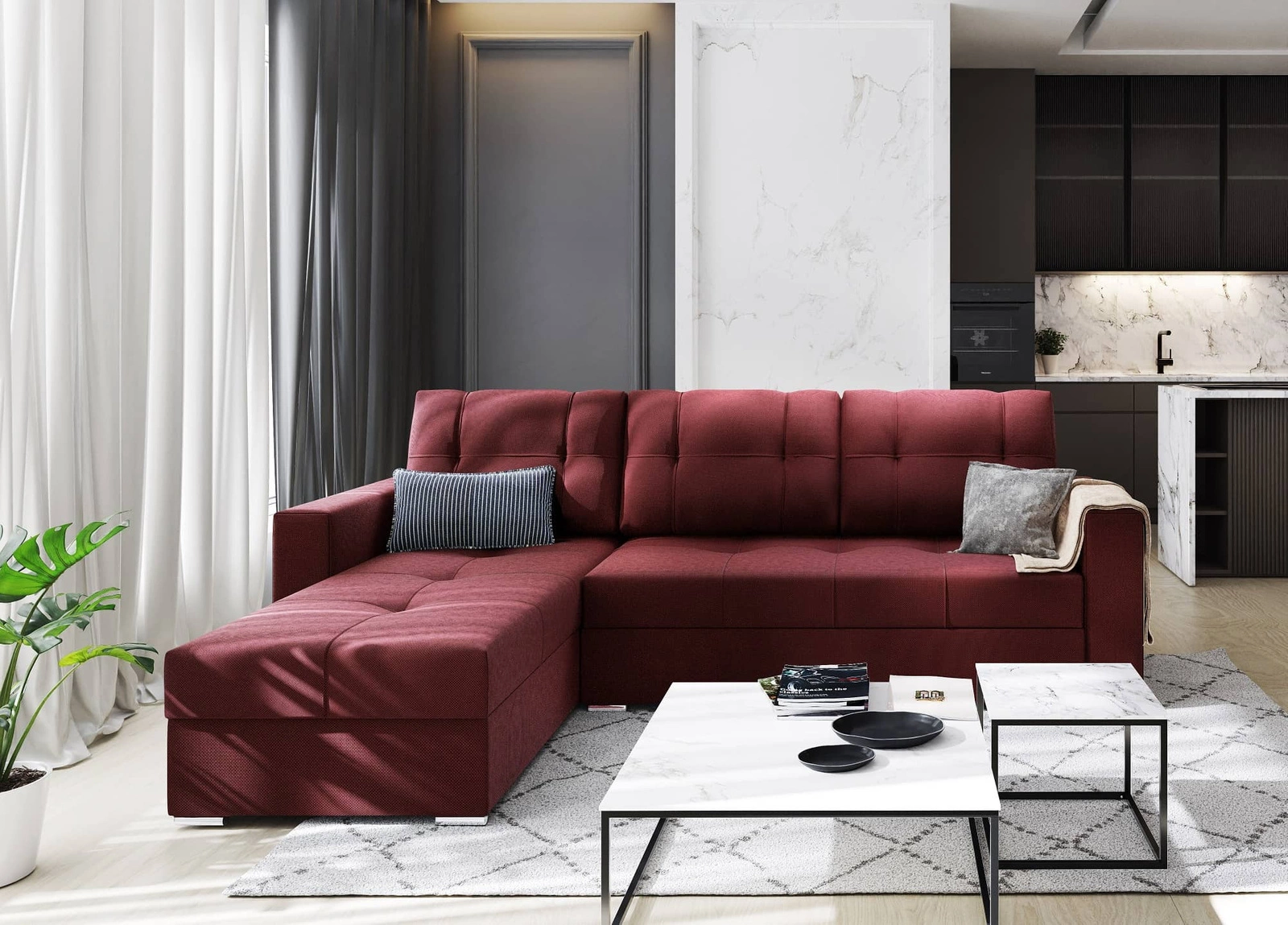 Rohová sedací souprava s funkcí spaní Aldo bordó levá strana zaručuje nejvyšší pohodlí a funkčnost