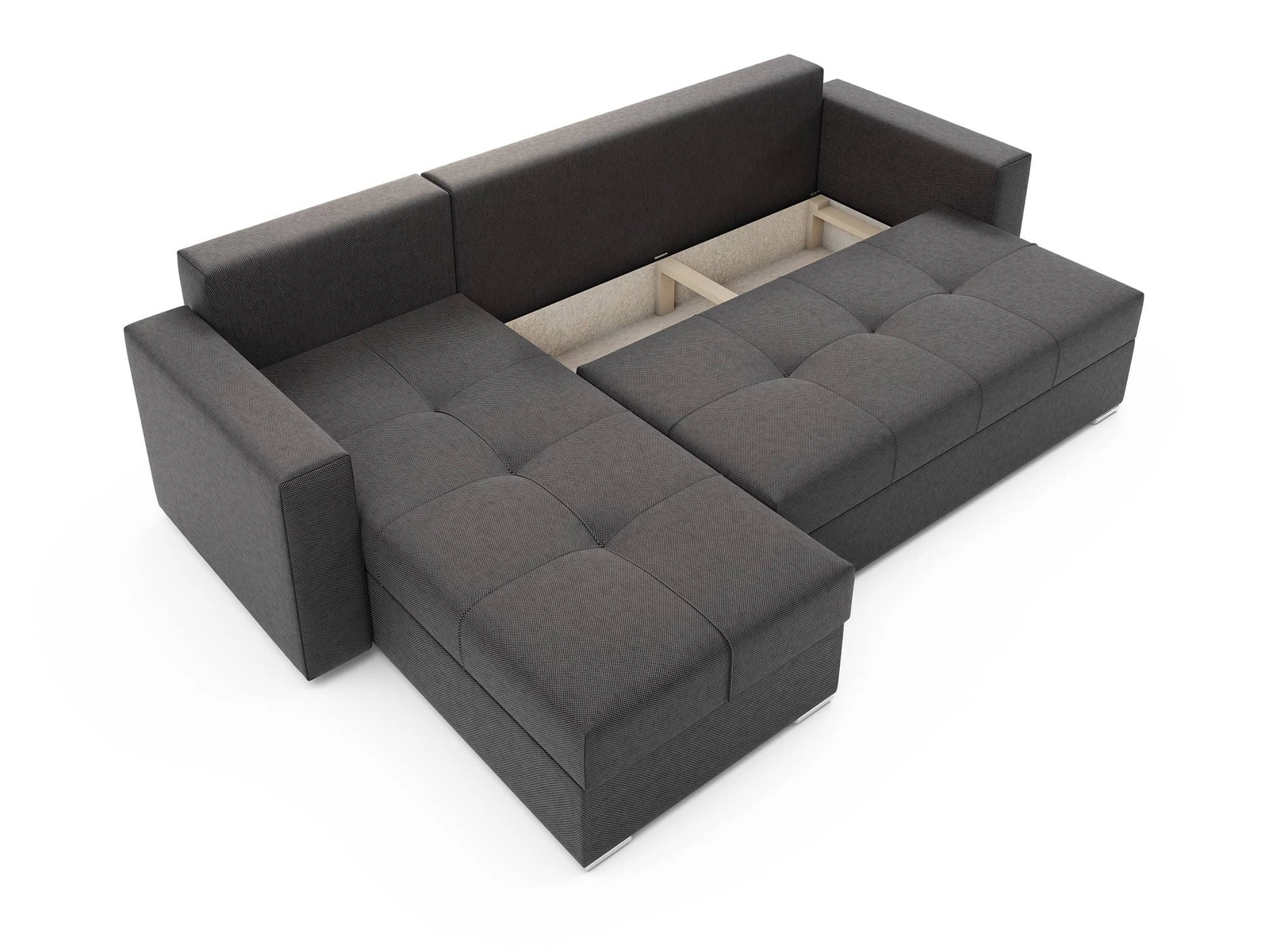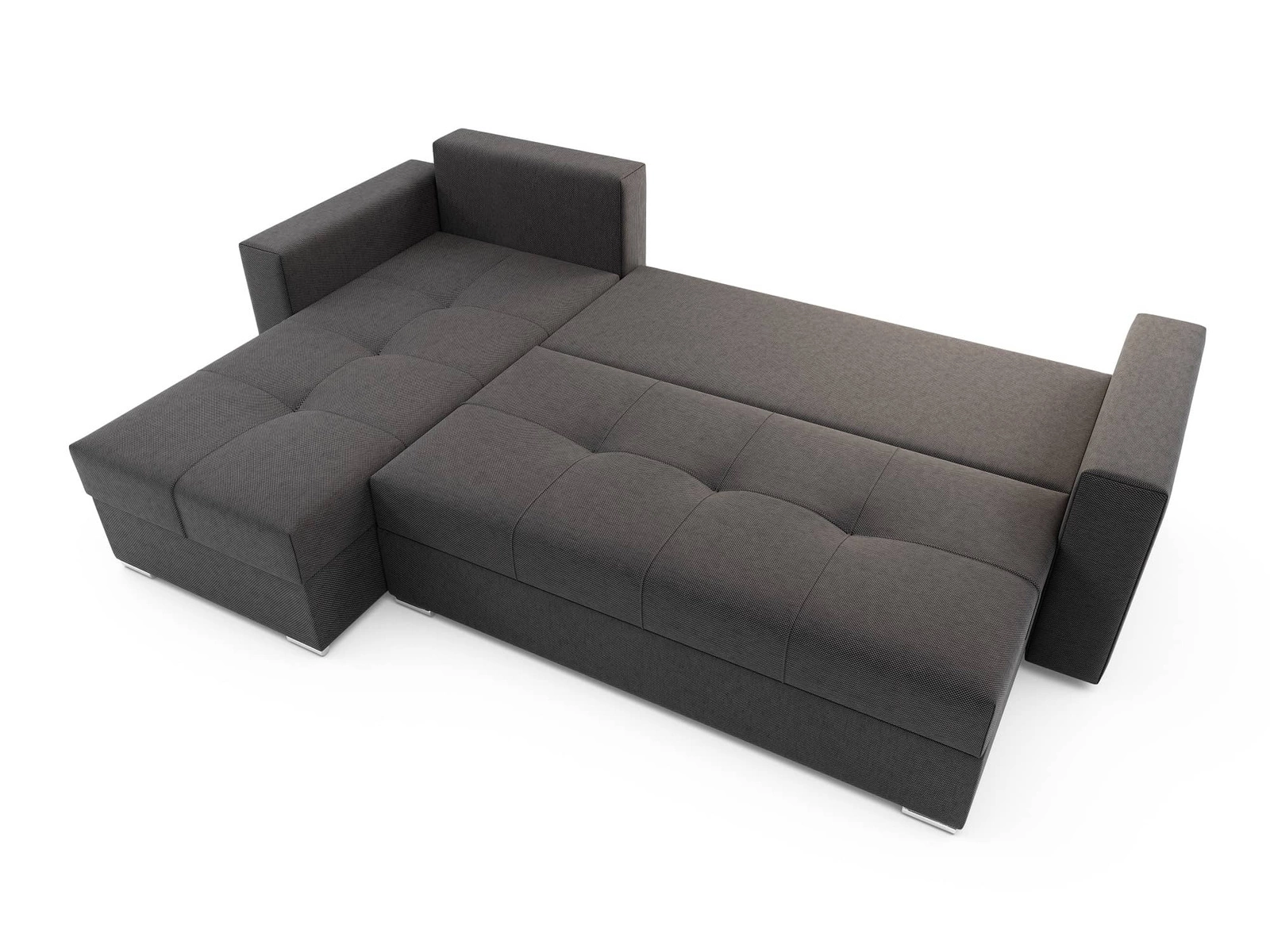 Rozložení celé spací plochy je velmi snadné a nevyžaduje velkou sílu. Sedadlo je rozkládací na dřevěných ližinách. Montážní strana rohové sestavy může být levá nebo pravá, což znamená, že lehátko nábytku lze pohodlně přizpůsobit potřebě umístění v interiéru! Nábytek je vybaven chromovanými nohami. Tento modernistický koutek se hodí do každého typu místnosti! Zaručuje pohodlné a bezproblémové používání a trvanlivost celého nábytku po mnoho let používání. Ideální pro každý interiér zařízený ve vašem oblíbeném stylu!