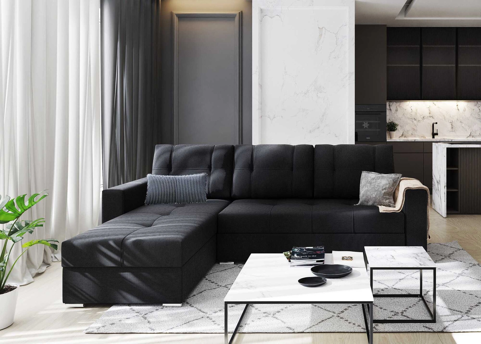 Rohová sedací souprava s funkcí spaní Aldo černá levá strana zaručuje nejvyšší pohodlí a funkčnost