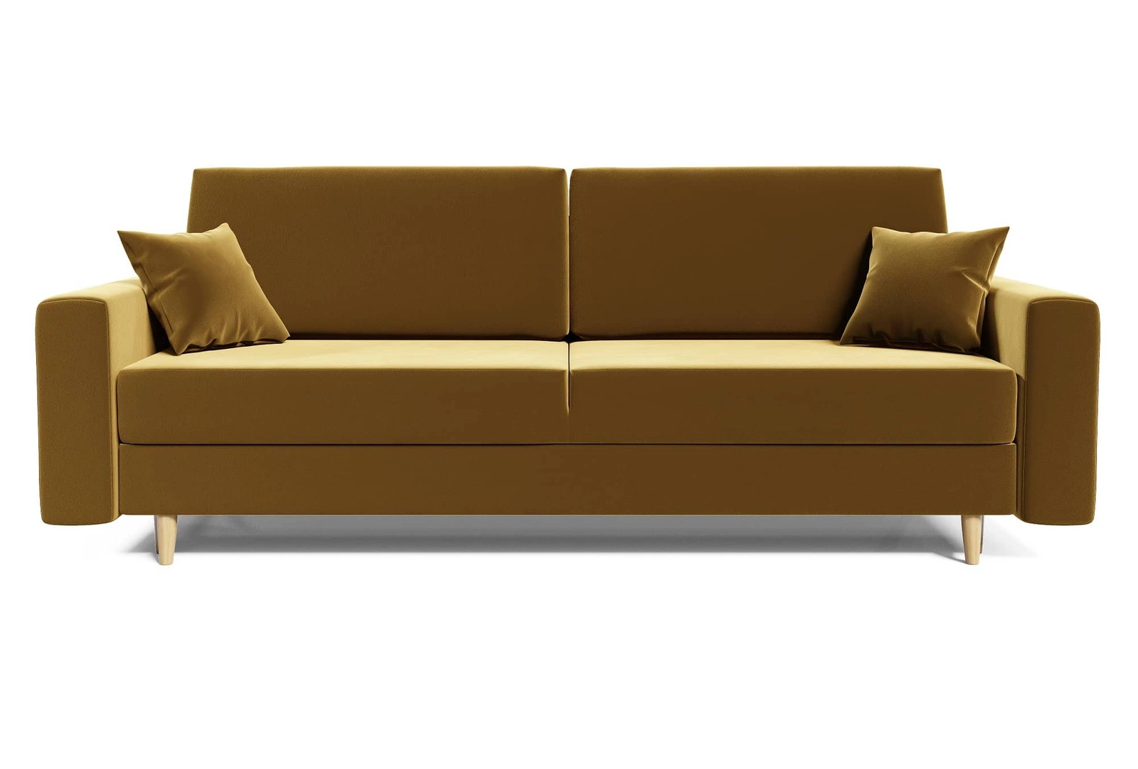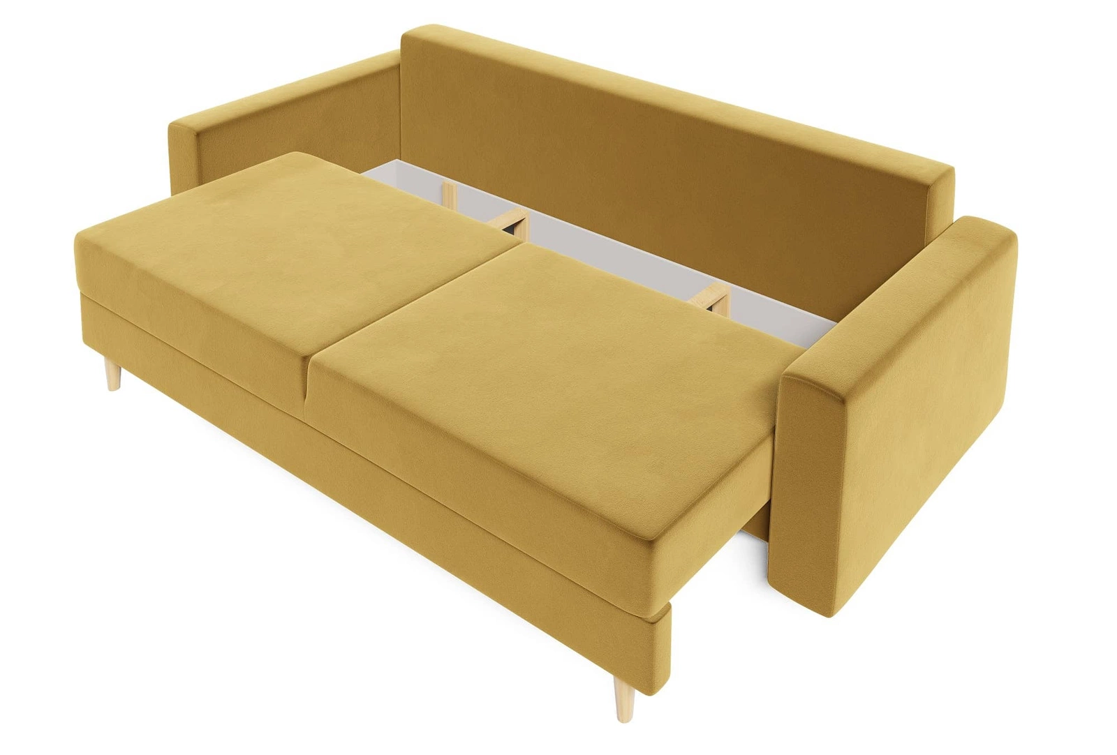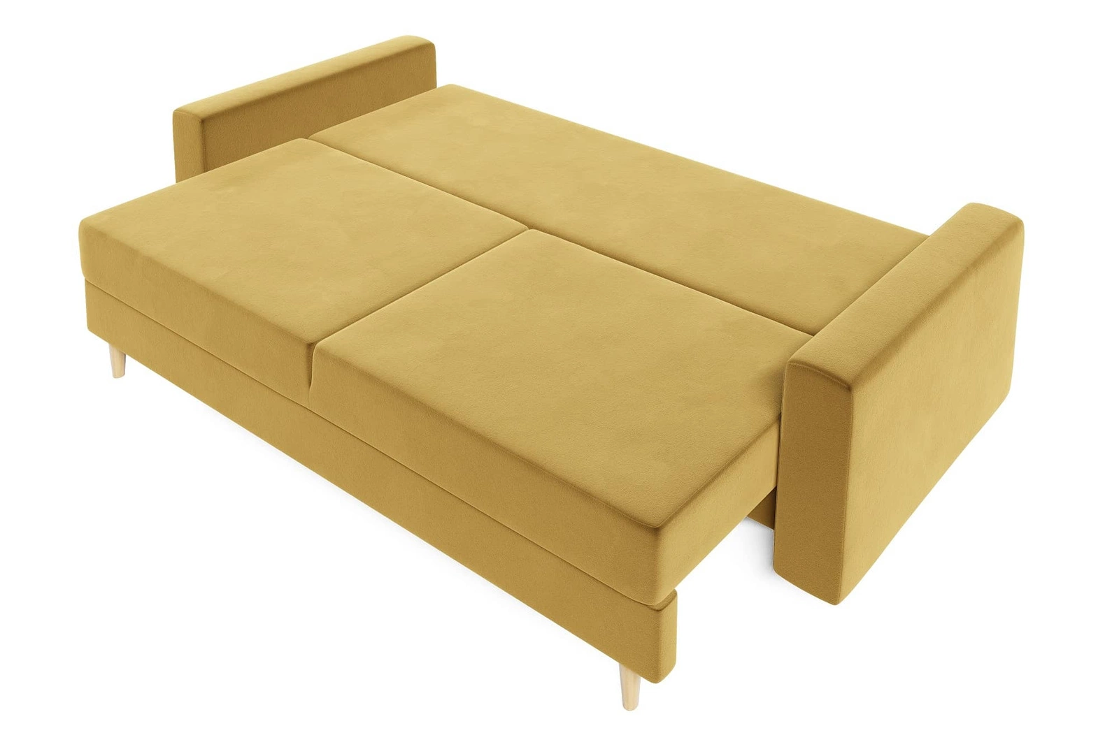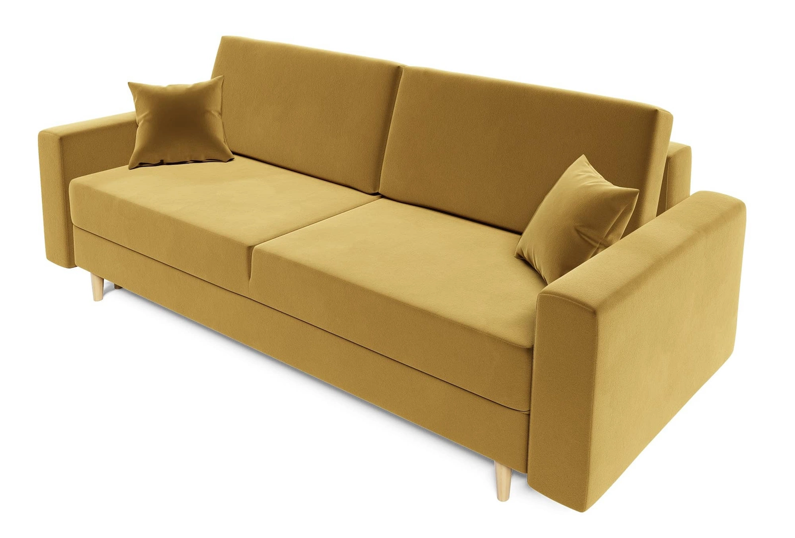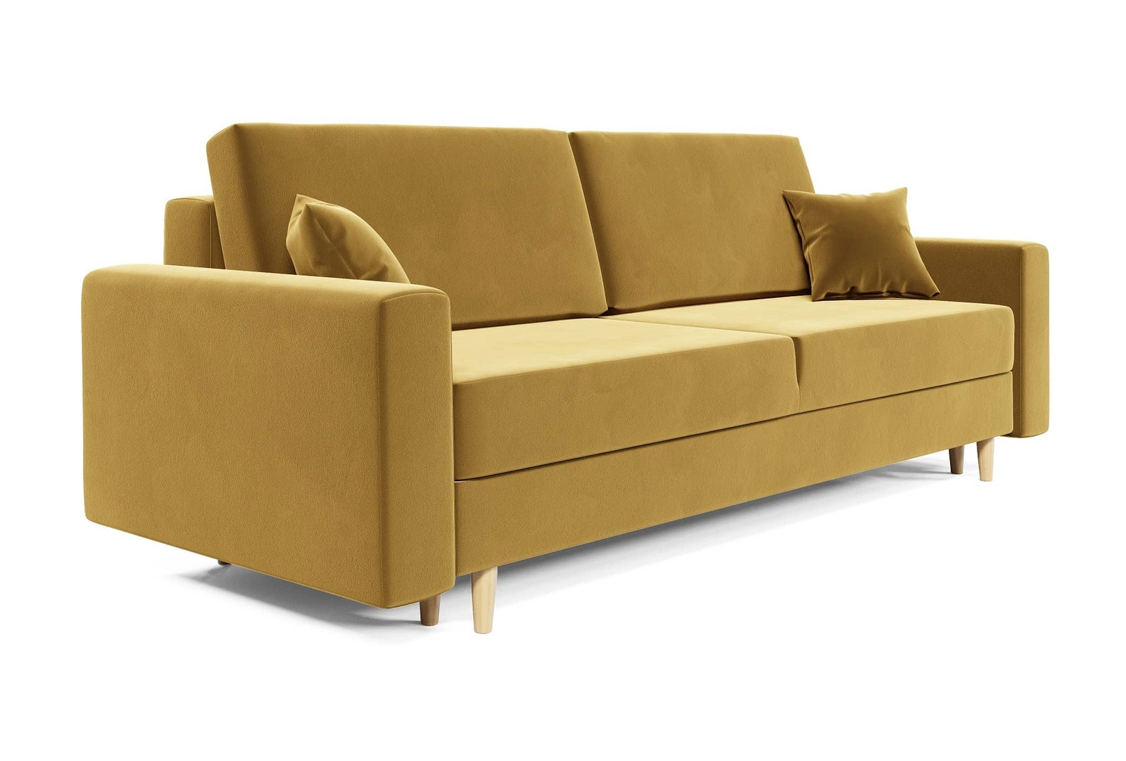 Pohovka rozkládací pohovka Ines v hořčicové barvě je ideálním řešením pro obývací pokoj a skvěle zapadne do každého interiéru.