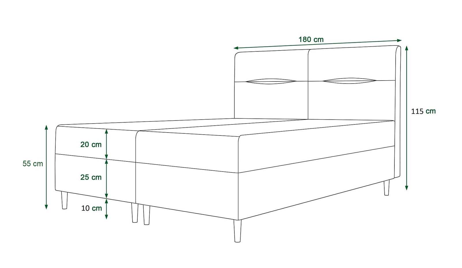 Lůžko z tkaniny typ samet Monolit 59 zaručuje maximální pohodlí a funkčnost pro každodenní relaxaci v ložnici. Tkanina je opatřena vrstvou hydrofobní, což zaručuje omezenou absorpci kapalin. Zajímavá struktura tkaniny dodává jedinečný charakter. Díky všem vlastnostem použité látky si kontinentální postel zachová svůj původní vzhled po dlouhou dobu. Konstrukce lůžka zajišťuje velkou stabilitu a pohodlí při používání. Rám kontinentální postele je vyroben ze dřeva a nábytkové desky. Světlo šití na čele postele upoutají pozornost a dodají posteli zvláštní charakter. Postel je vybavena dřevěné nohy.