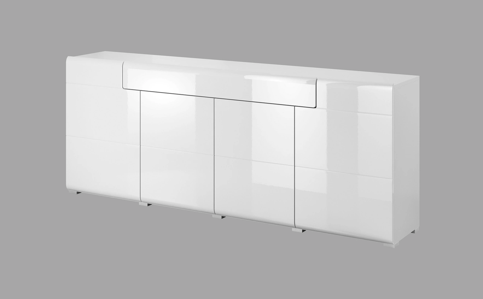 Komoda Toledo 208 cm bílá / bílý lesk moderní design čela komody jemně prohnutá