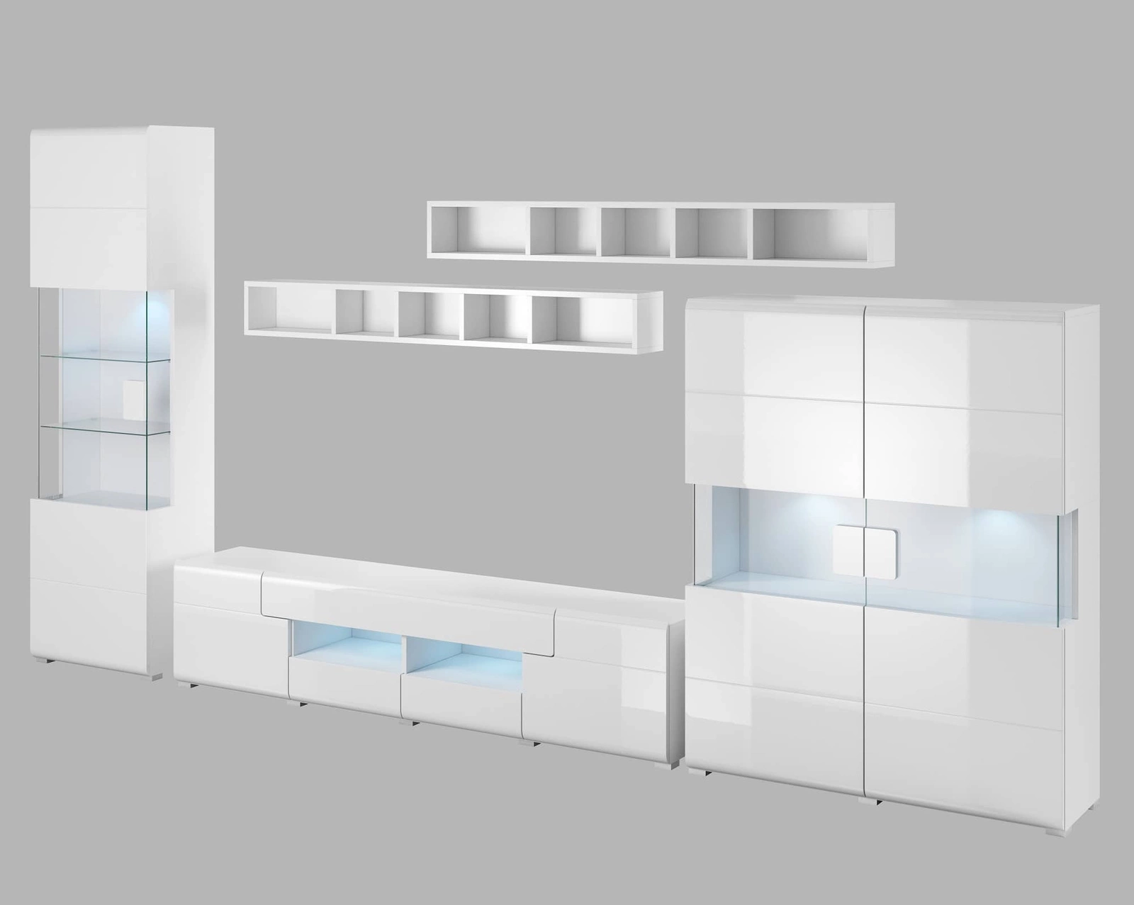 Zestaw mebli do salonu lub pokoju dziennego Toledo w kolorze białym wykończone na wysoki połysk
