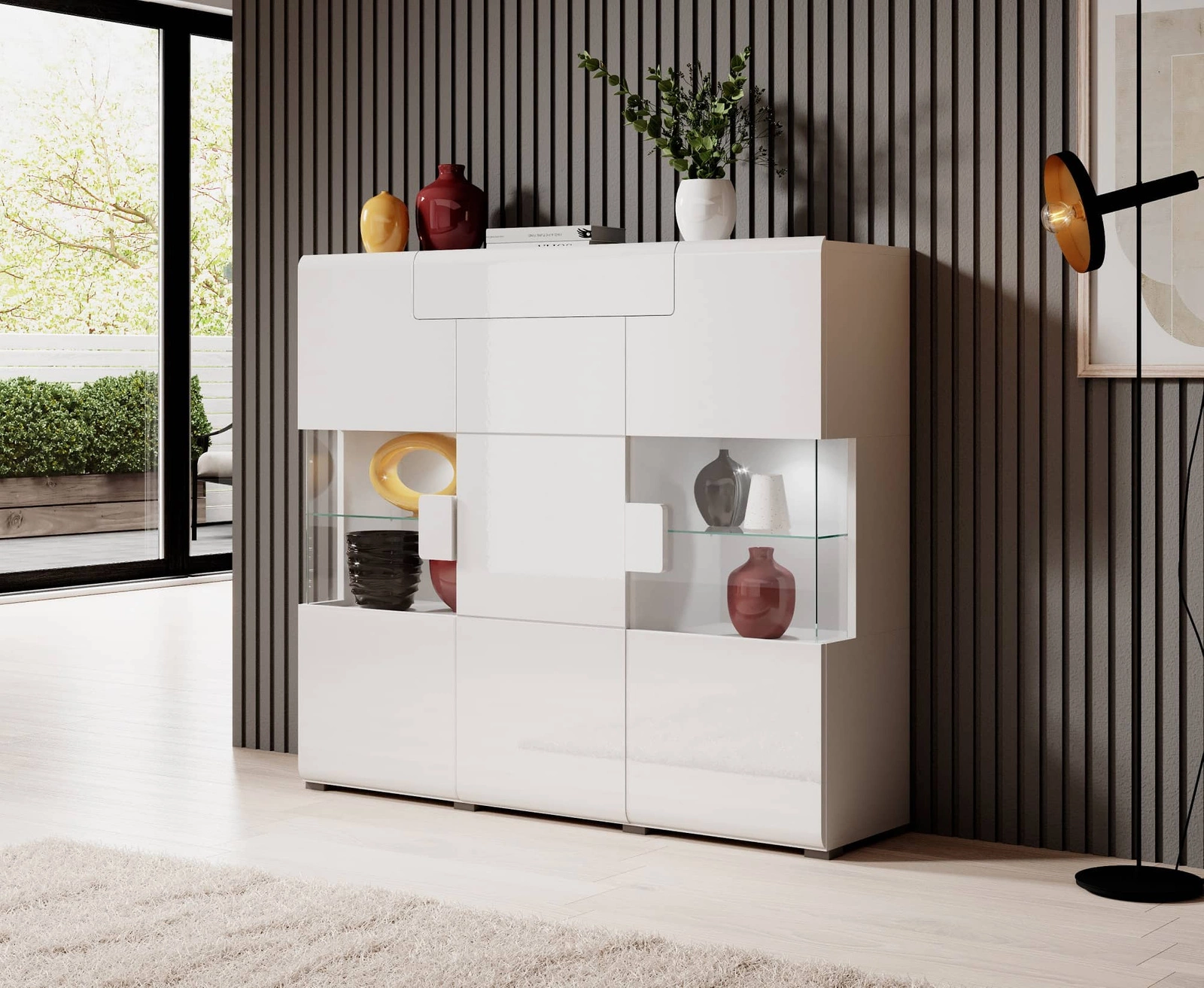 Obývací sestava Toledo v bílém lesku ideální do obývacího pokoje a obývacího pokoje