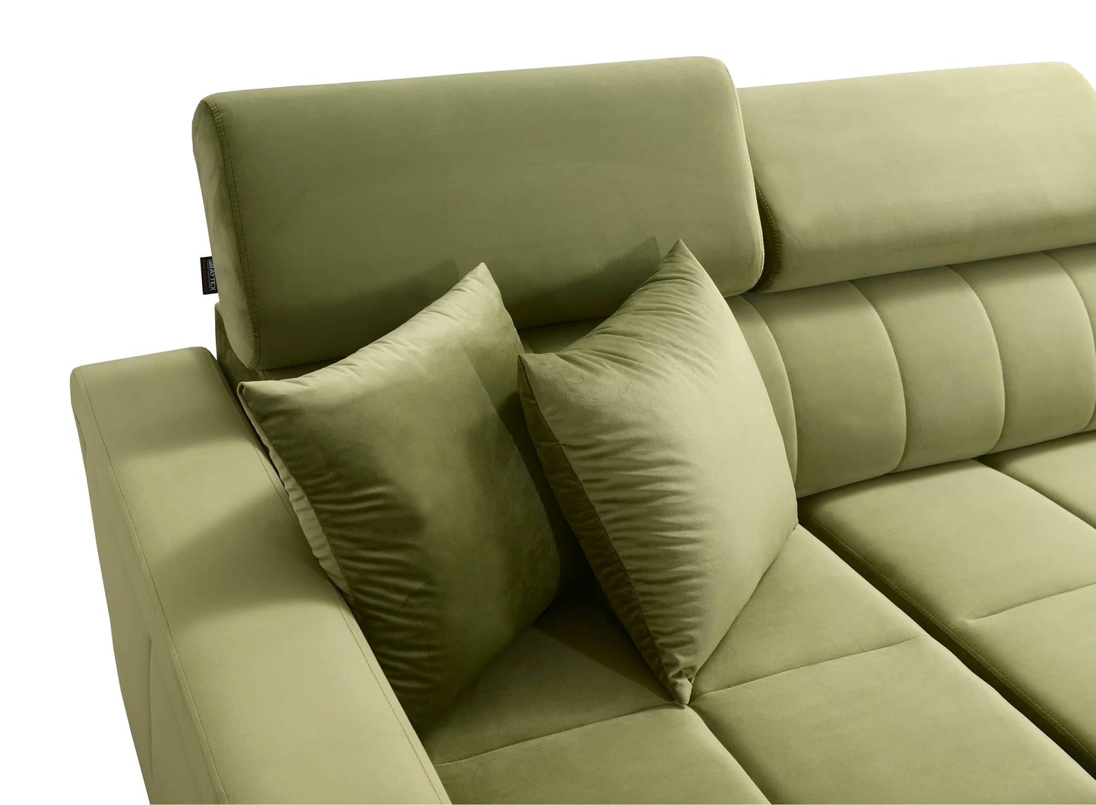 Vlnité pružiny a polyuretanová pěna T30 je materiál, z něhož je vyrobeno sedadlo pohovky. Pevné opěradlo s nastavitelnými opěrkami hlavy zaručuje pohodlný odpočinek po dlouhém dni, který oceníte vy, vaši blízcí i vaši hosté, kteří si na tuto jedinečnou pohovku sednou!