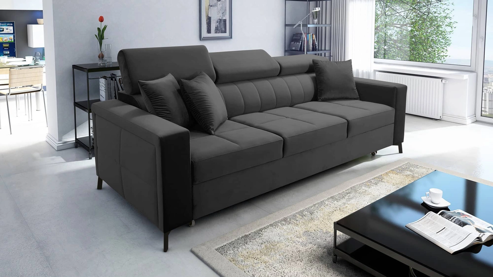 Pohovka Nausa v grafitové barvě je receptem na moderní interiér vašeho domova!