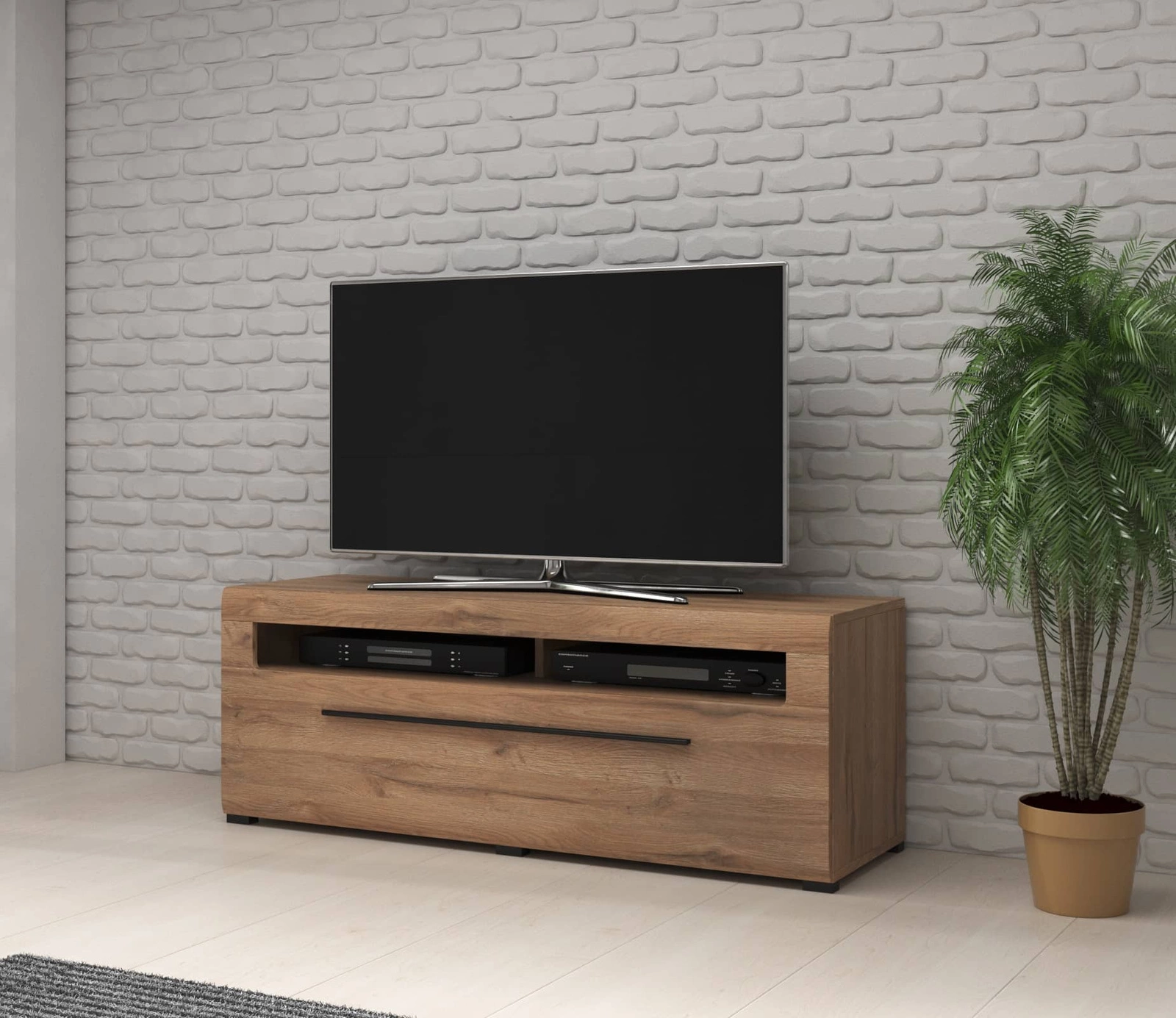 Komoda RTV Tulsa z szufladą to nowoczesne, a zarazem praktyczne rozwiązanie do salonu.