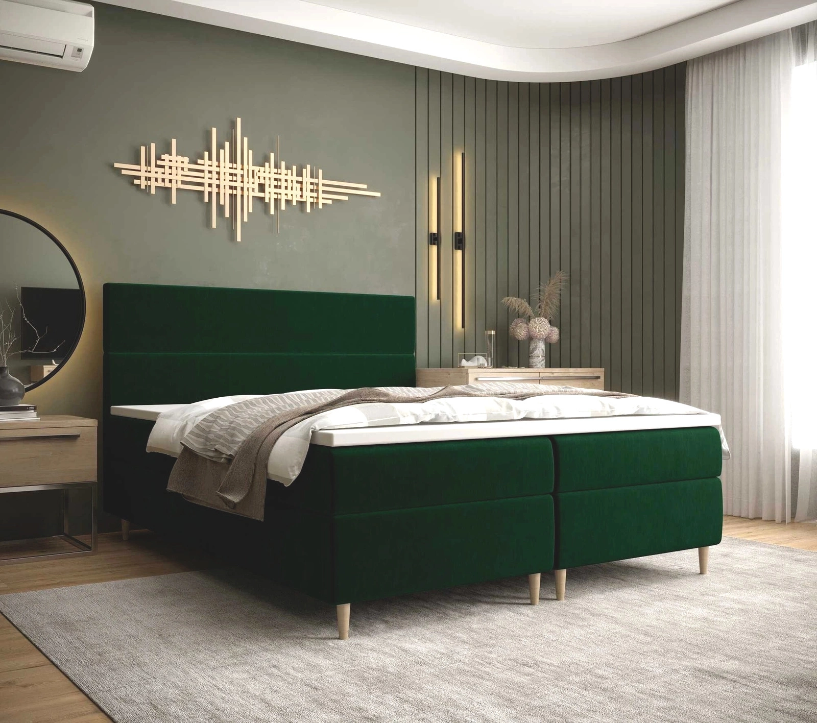 Kontinentální postel Bing 180x200 lahvově zelená v moderním skandinávském stylu s výrazným čelem