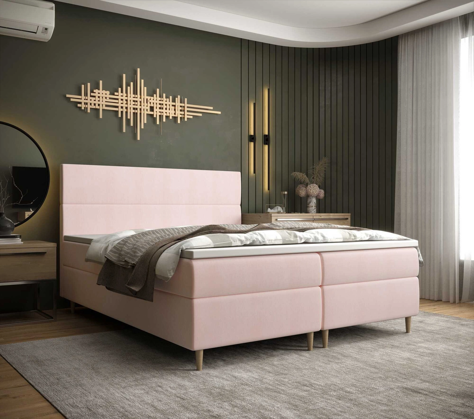 Kontinentální postel Bing 140x200 v pudrově růžové barvě je stylový kus nábytku, který se skvěle hodí do každé ložnice.