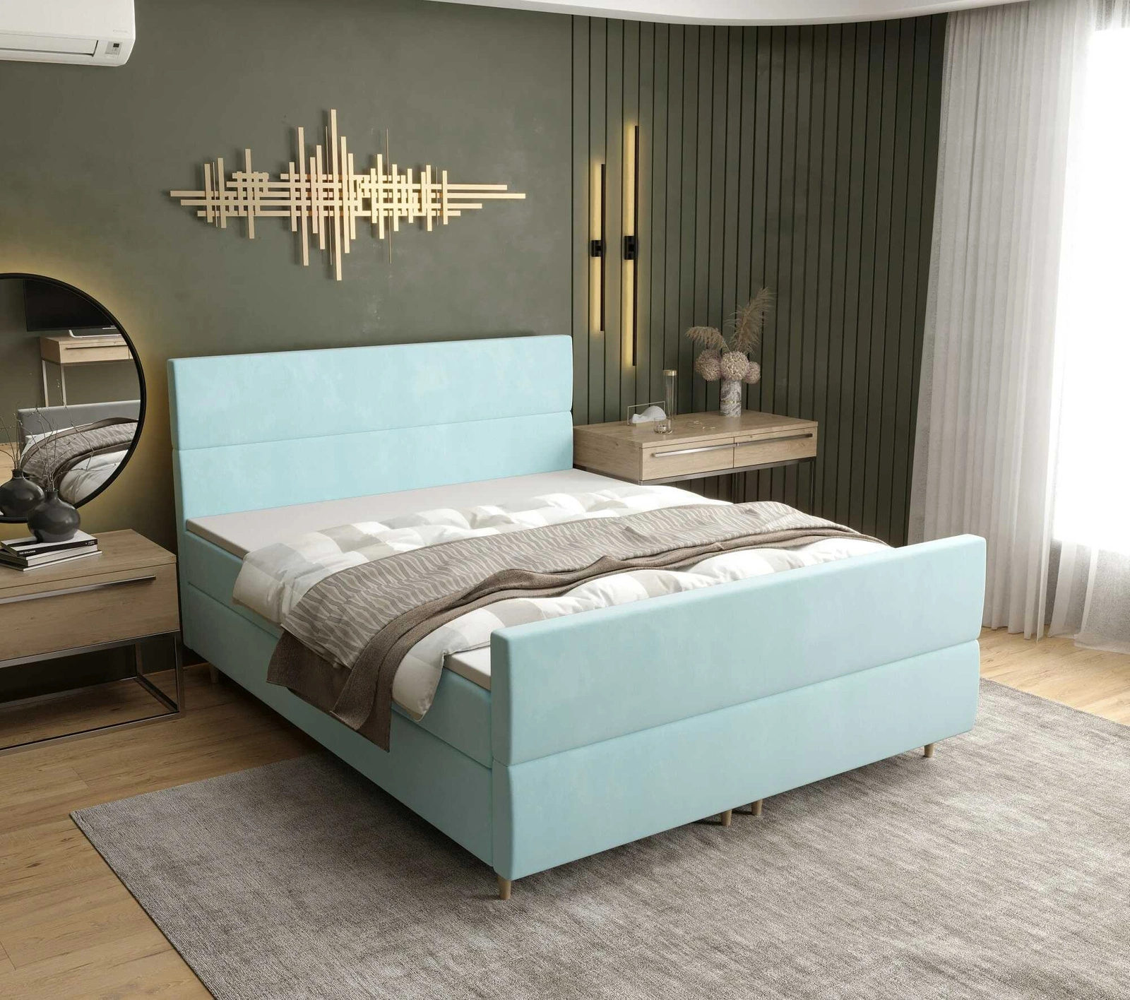 Kontinentální postel Benet 160x200 v modré barvě je stylový kus nábytku, který dokonale zapadne do každé ložnice.