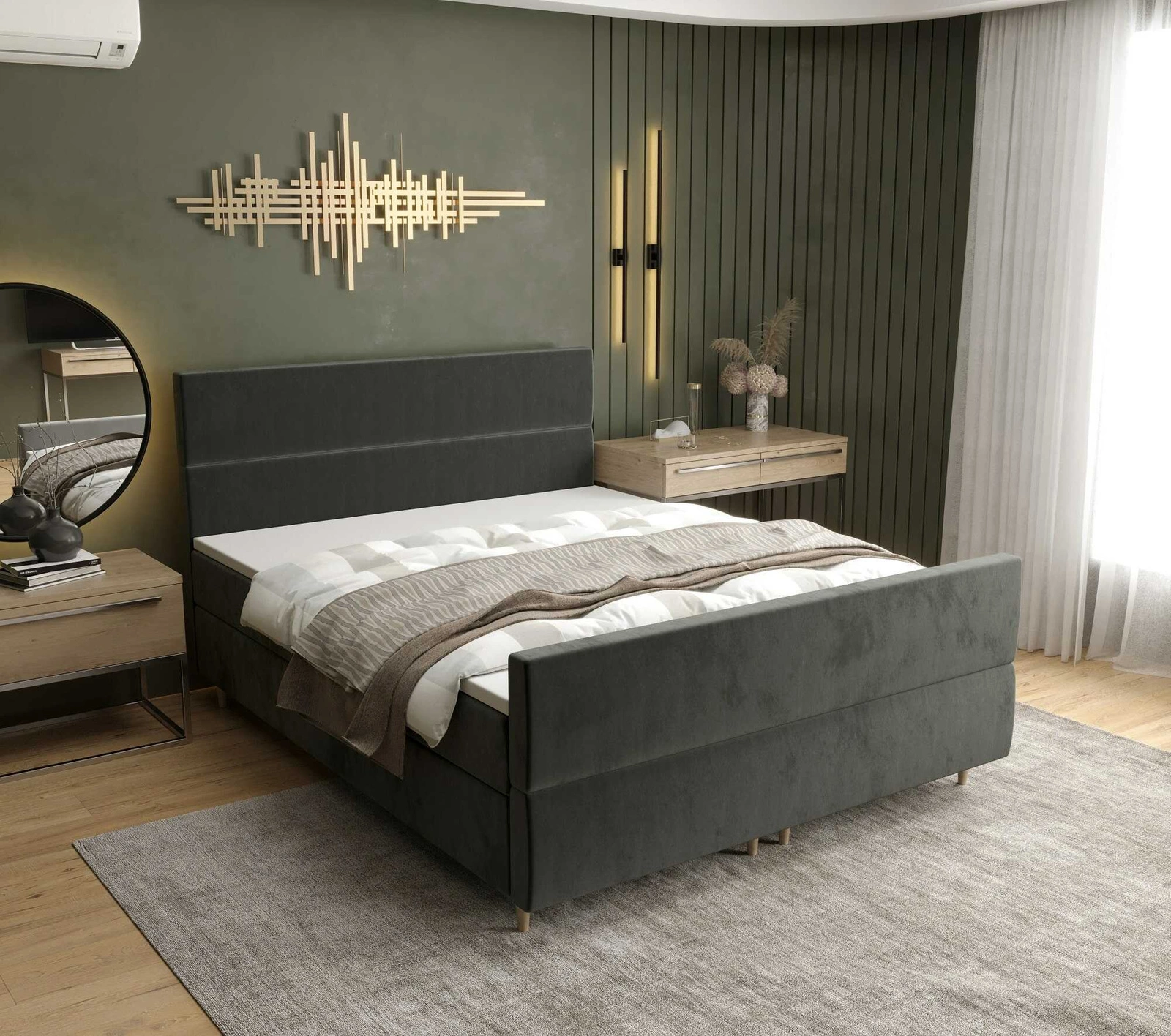 Kontinentální postel Benet 160x200 grafit v moderním skandinávském stylu s výrazným čelem a nohou