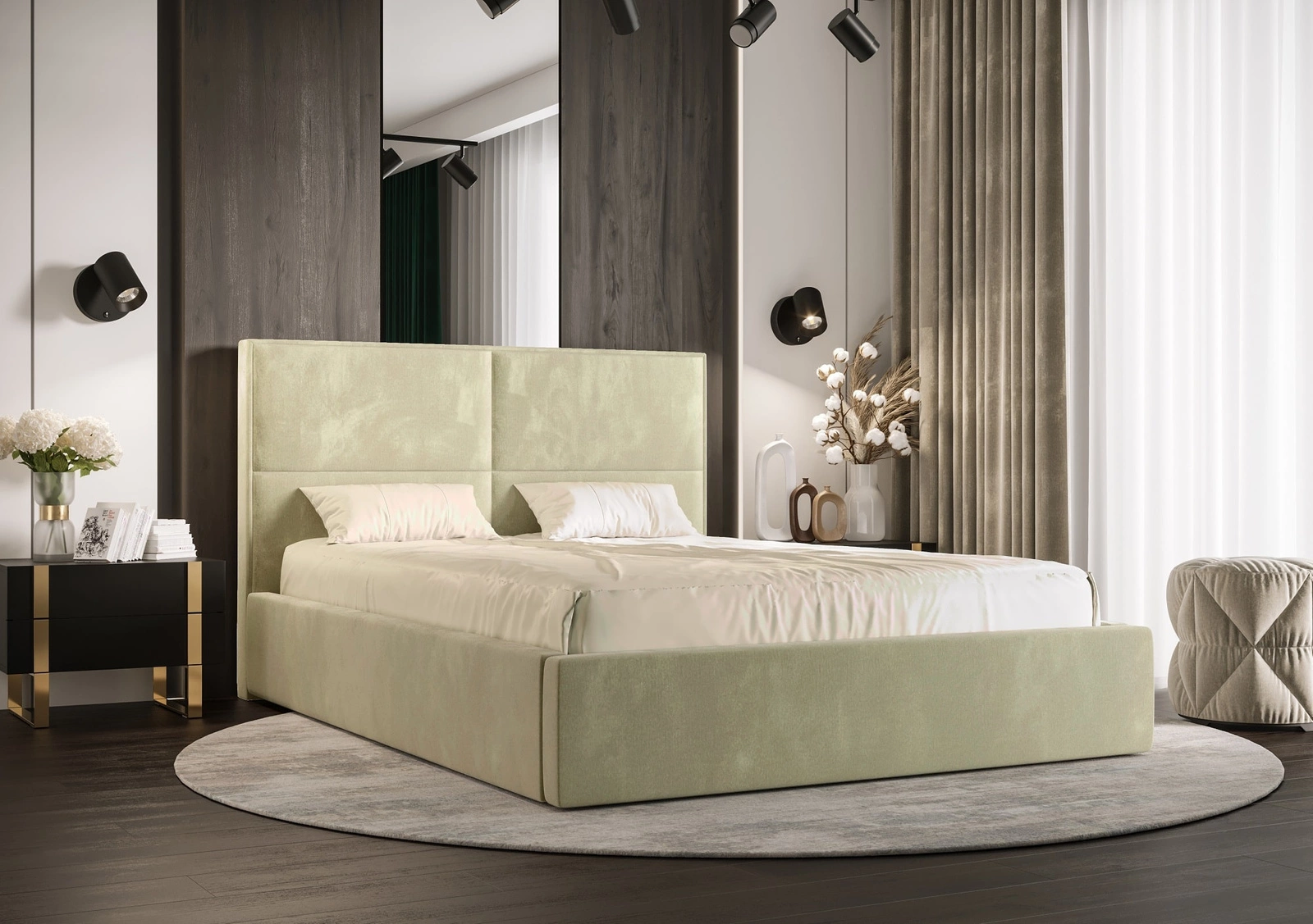 Lůžko z tkaniny typ samet Monolit 02 zaručuje maximální pohodlí a funkčnost pro každodenní relaxaci v ložnici. Tkanina je opatřena vrstvou hydrofobní, což zaručuje omezenou absorpci kapalin. Zajímavá struktura tkaniny dodává jedinečný charakter. Díky všem vlastnostem použité tkaniny si postel zachová svůj původní vzhled po dlouhou dobu. Konstrukce lůžka zajišťuje velkou stabilitu a pohodlí při používání. Rám postele je vyroben ze dřeva a nábytkové desky. Pohodlná a praktická opěrka hlavy je zakončen čtyřmi obdélníkovými panely.