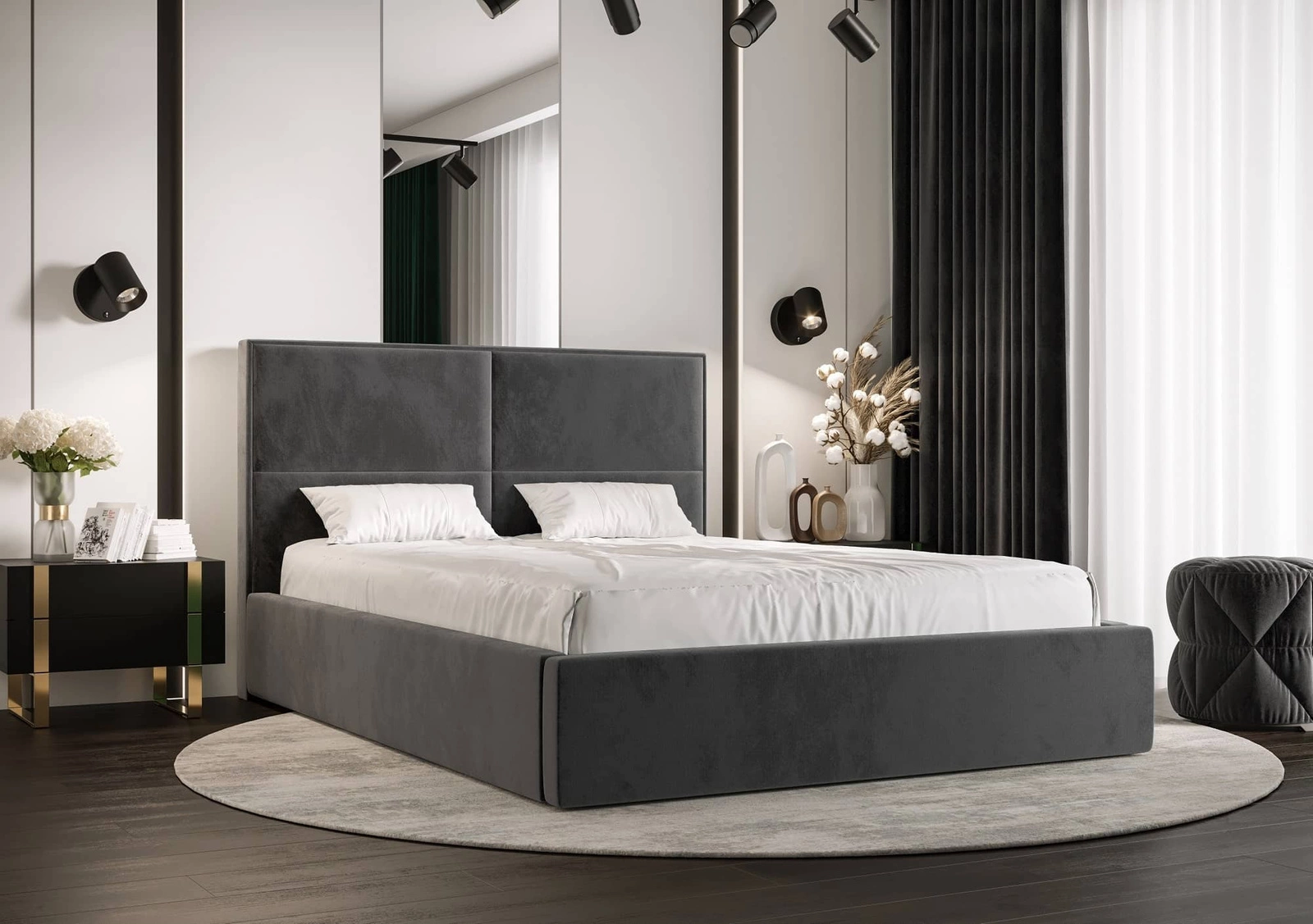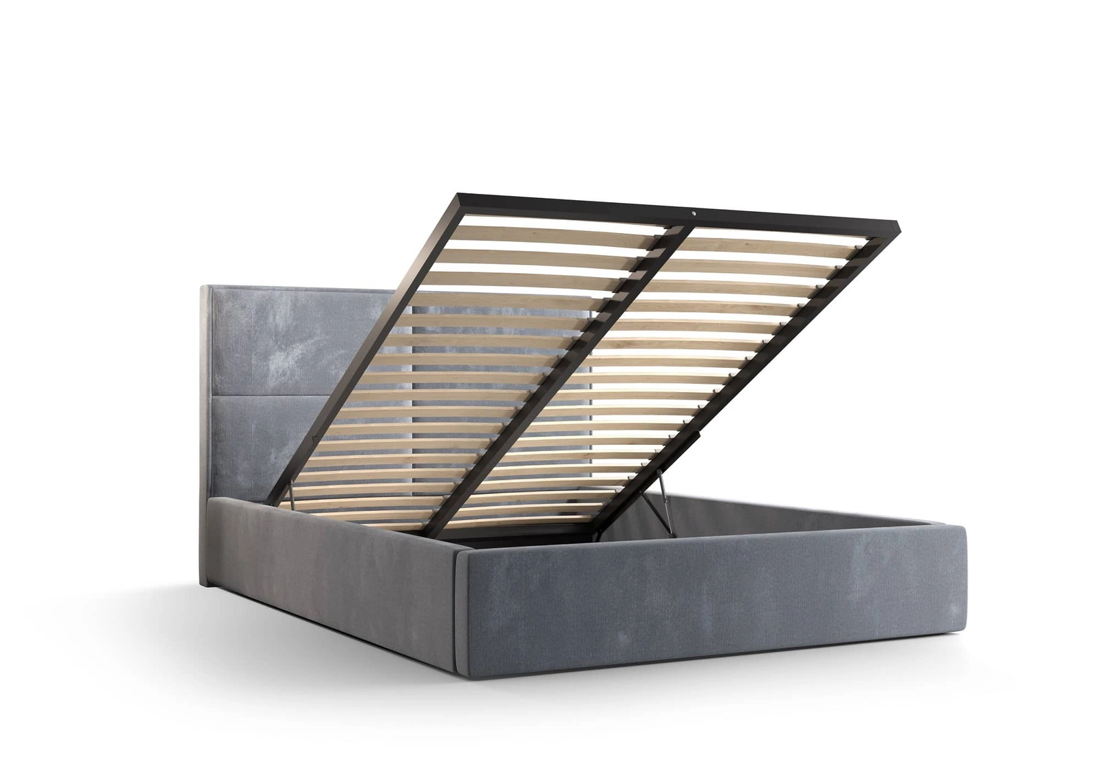 Čalouněná postel Aphrodite 160x200 s šedým úložným boxem v moderním skandinávském stylu s pohodlným čelem