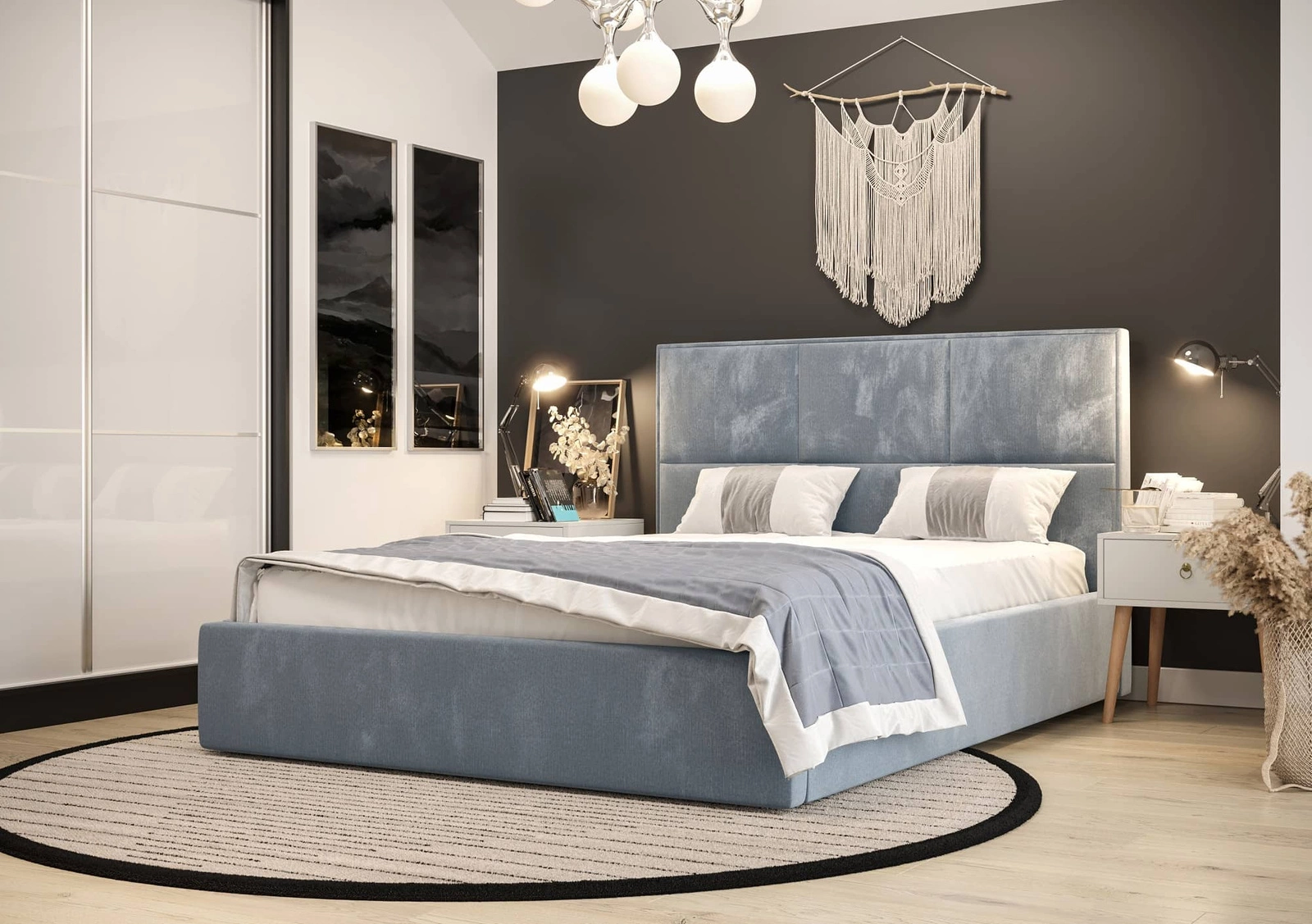 Panely na čele postele jsou vyplněny správným množstvím pěny, což posteli dodává další funkci.