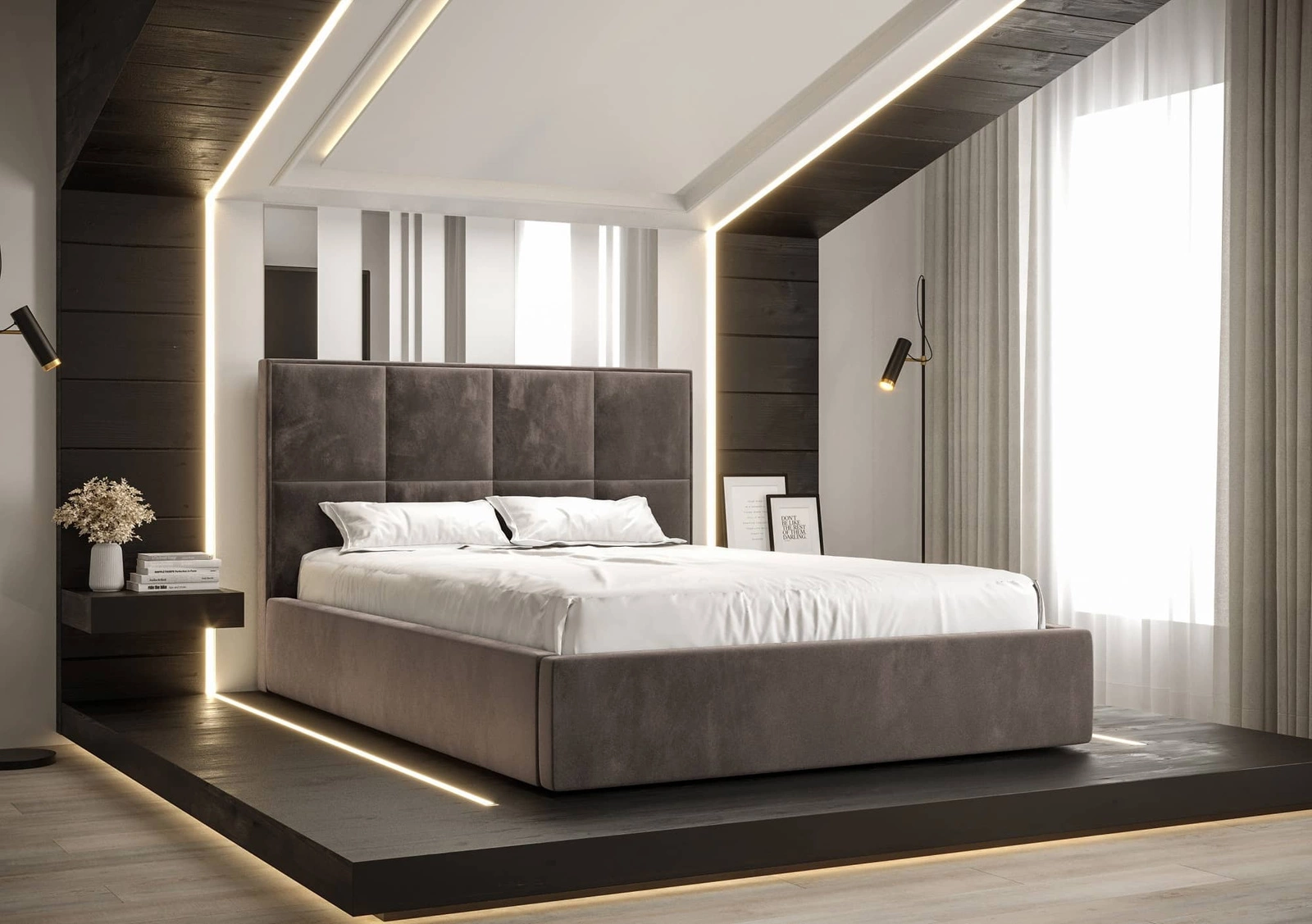 Panely na čele postele jsou vyplněny správným množstvím pěny, což posteli dodává další funkci.