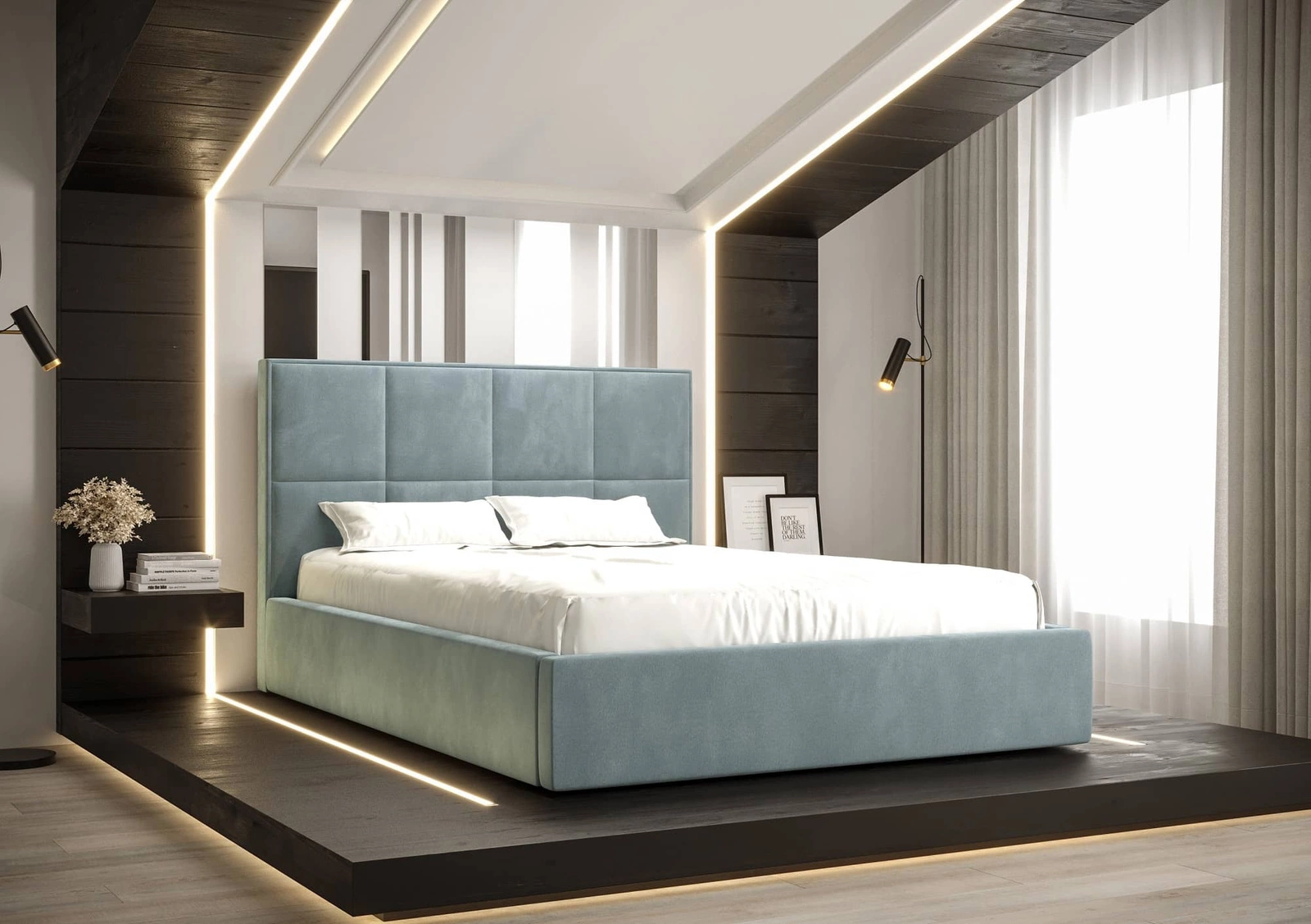 Panely na čele postele jsou vyplněny správným množstvím pěny, což posteli dodává další funkci.