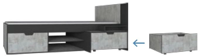 Postel s kontejnerem Nano 90x200 cm v grafitové barvě / dub riviera je recept na moderní a funkční interiér v pokoji teenagera.