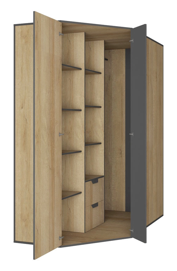Mobilní kontejner na kolečkách je skvělým místem pro knihy nebo hračky. Rohová skříň Nano je vybavena díl s tyčí pro zavěšení oděvů, díl s policemi a zásuvky.