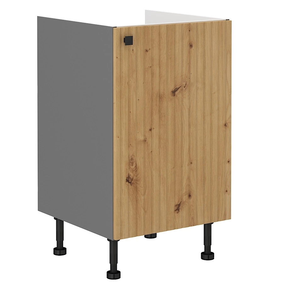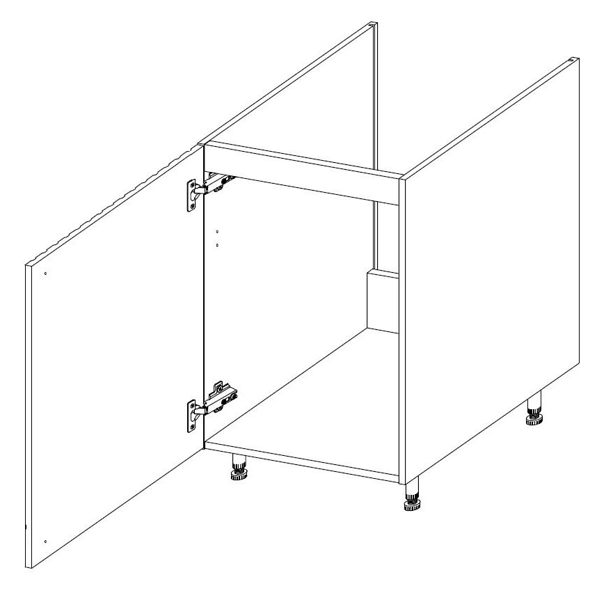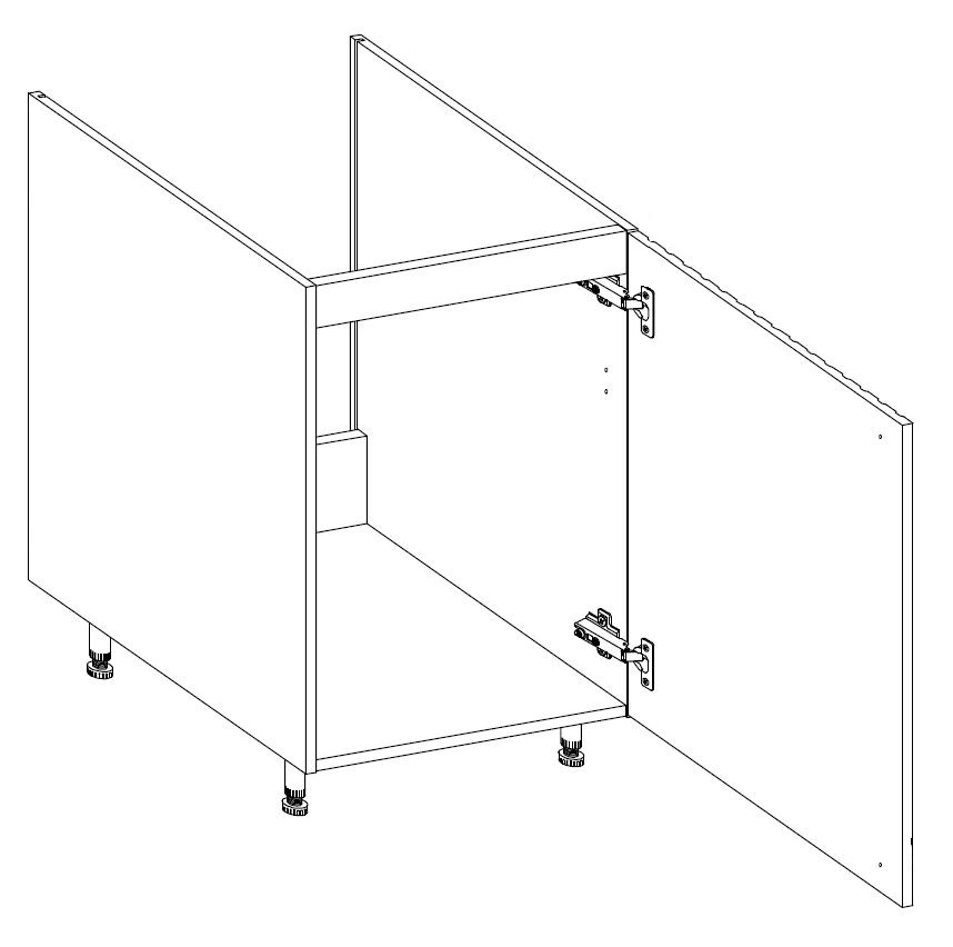 Pro usnadnění instalace odtoku byla kuchyňská skříňka zbavena zadní stěny. Dveře jsou univerzální a lze je namontovat na pravou nebo levou stranu. Standardním vybavením kuchyňské skříňky pod dřez jsou panty se systémem tichého zavírání, který zvyšuje komfort a bezpečnost používání nábytku.