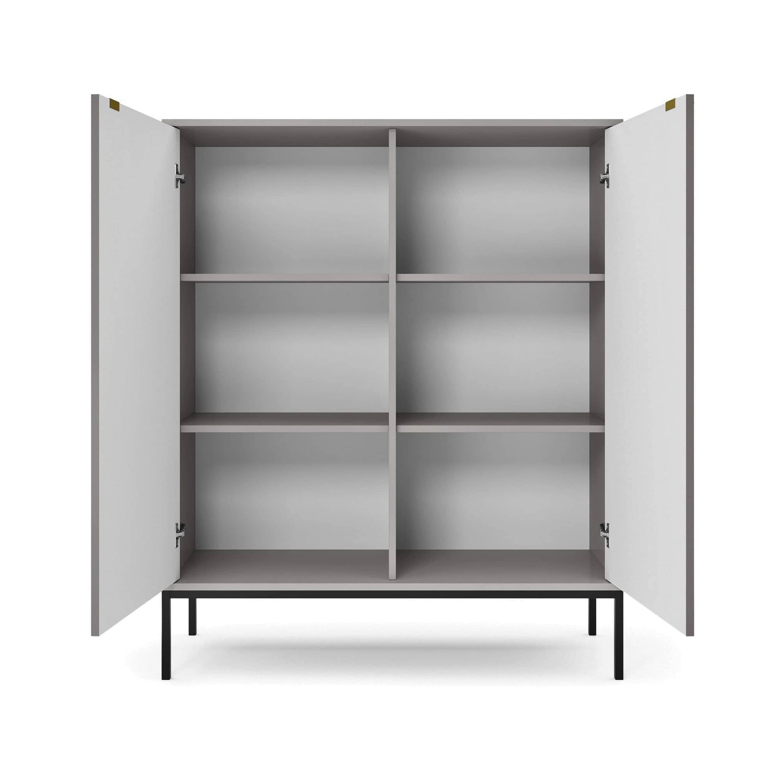 Komoda je vyrobena ze 2 dveře. Komoda zaručuje pohodlné a bezproblémové používání a trvanlivost celého nábytku po mnoho let používání. Tlumená šedá dobře se kombinuje s ostatními barvami, takže nábytek Lovro dokonale ladí s jakýmkoli interiérem.