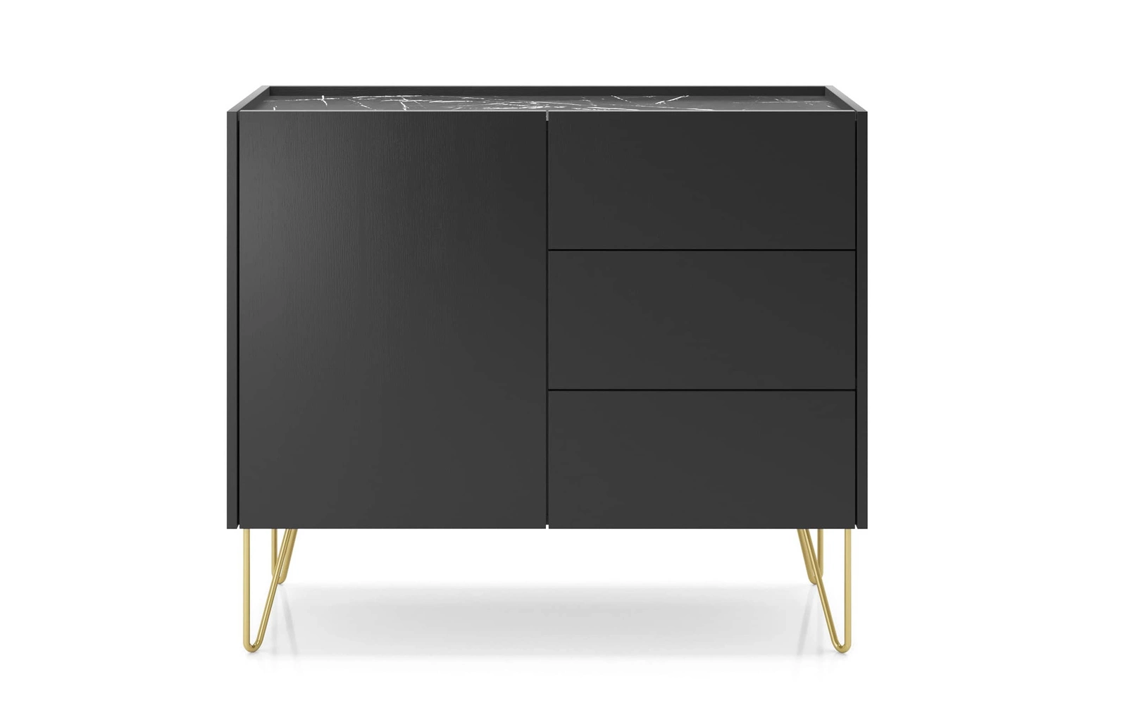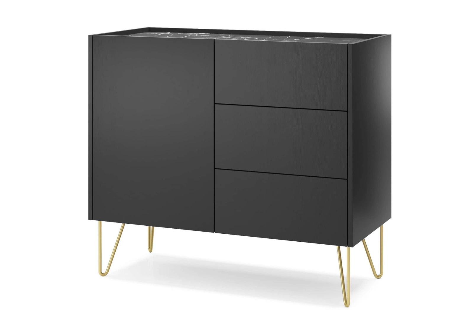 Zásuvková komoda Madison 97 cm černá grafitová / mramorová černá královský modernistický design dekorativní deska v mramorovém dekoru