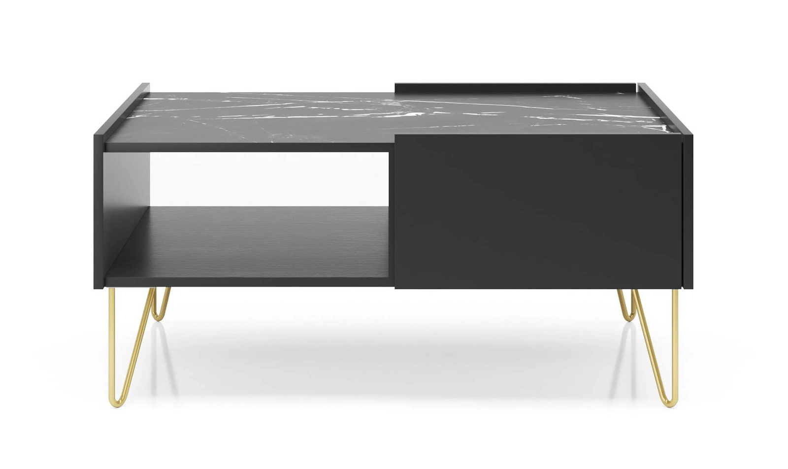 Konferenční stolek Madison černý grafit / černý královský mramor se zásuvkami deska odolná proti polití modernistický design dekorativní deska v mramorovém dekoru