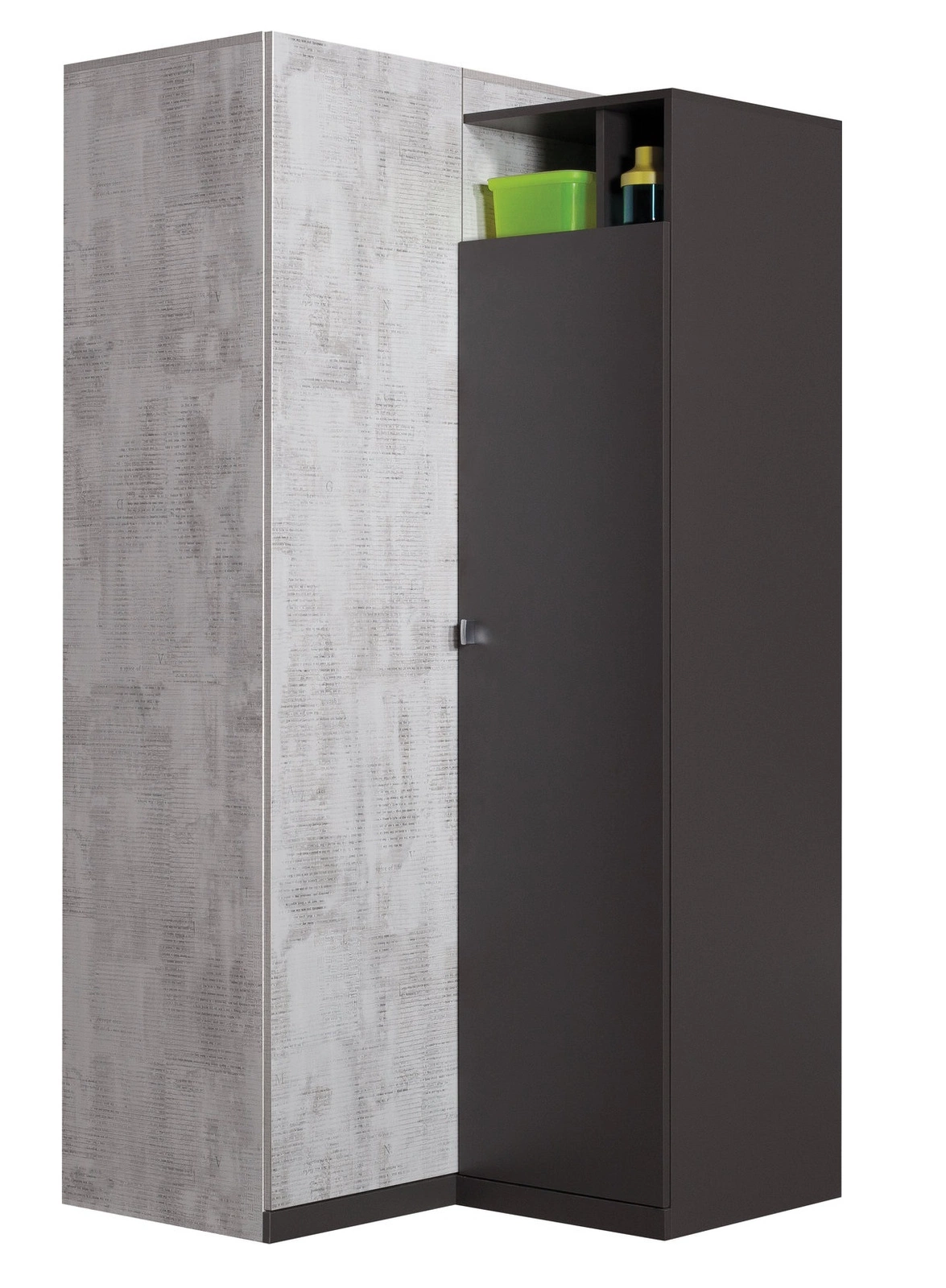 Rohová šatní skříň Tablo graphite / enigma ideální do pokoje pro mládež velmi použitelná a má moderní design