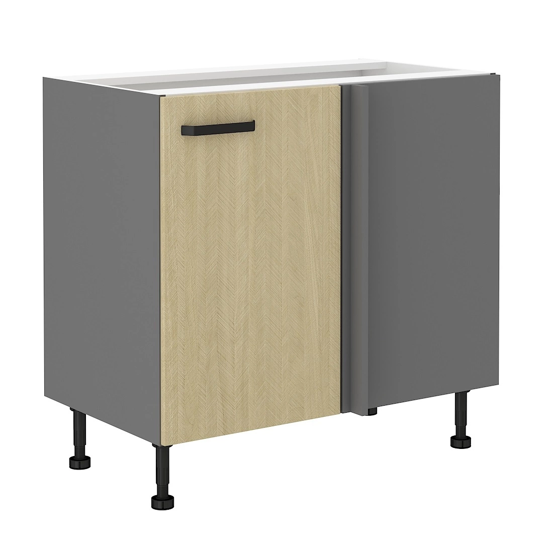 Zestaw mebli kuchennych narożny Chevron w kolorze beż jodełka / antracyt