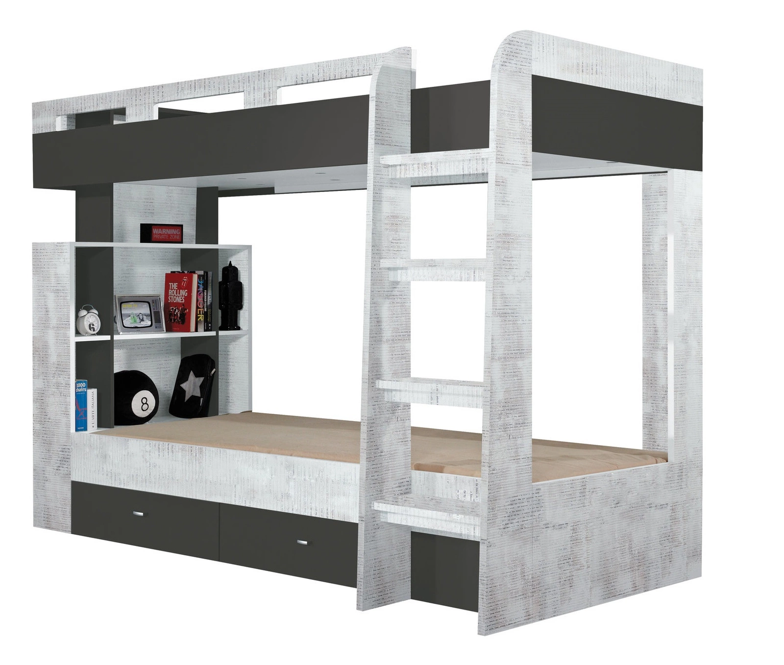 Patrová postel Tablo 90x200 cm grafit / enigma ideální pro dětské a mládežnické pokoje lemování zakončené speciální dýhou