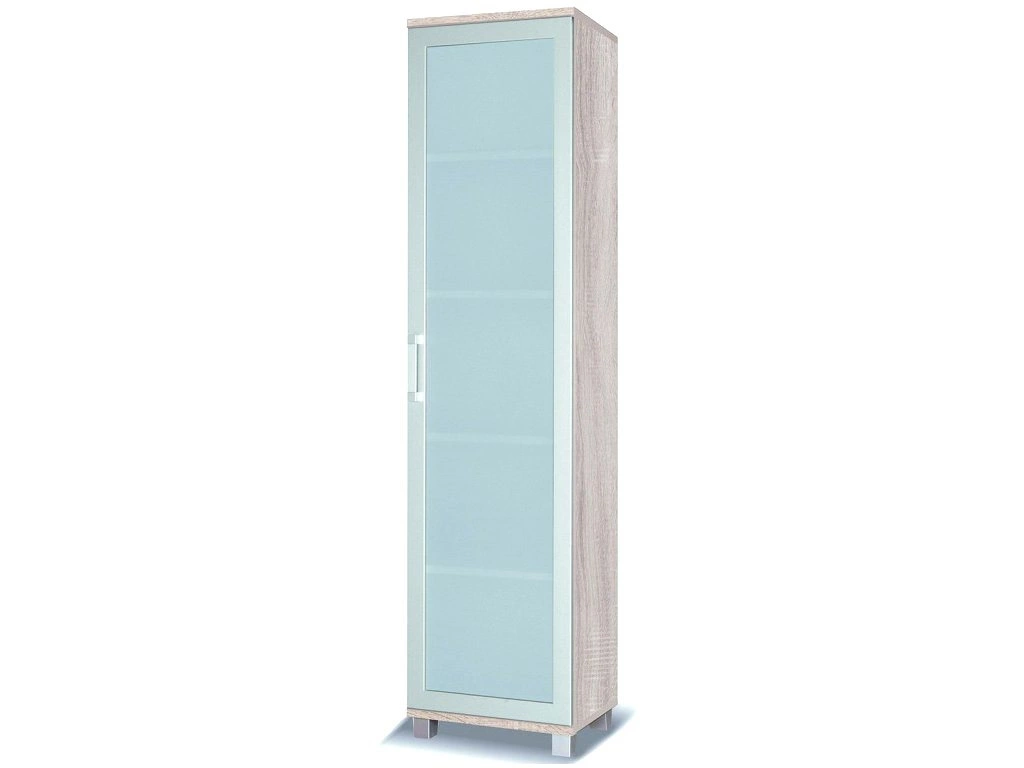 Vitrína Maximus 50 cm světlý dub sonoma moderní design hrany zdobené speciálními dýhovými prvky z bezpečného tvrzeného skla