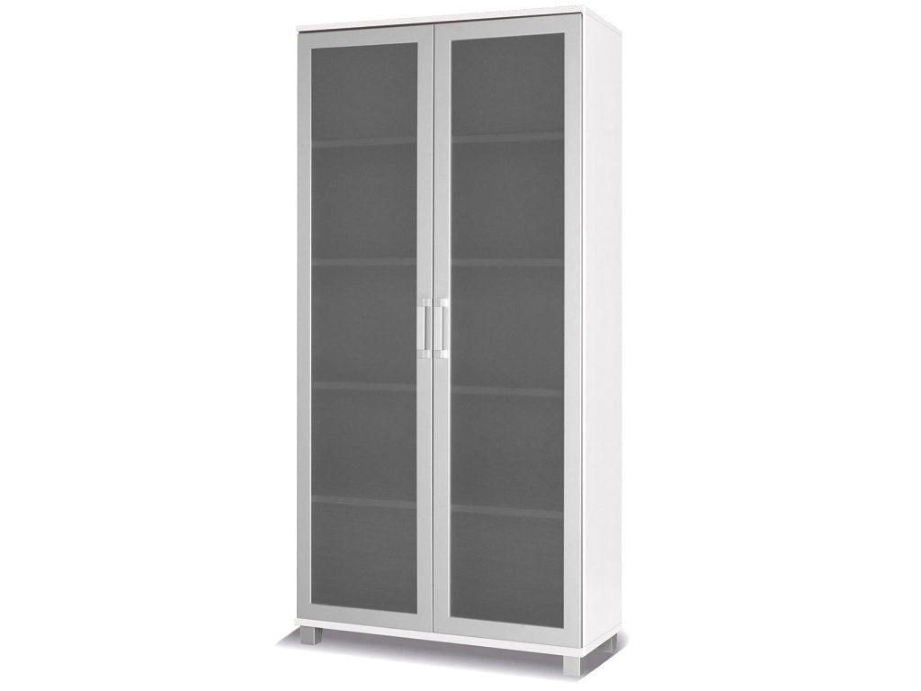 Skříň Maximus se vyznačuje jednoduchými tvary a stylovými nohami v barvě hliníku. Fronty s mléčným sklem a oornamentální čelní lišta z MDF ve stříbrné barvě dodává nábytku jedinečný vzhled.