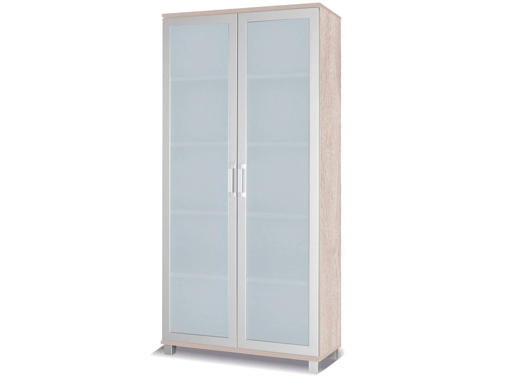 Skříň Maximus se vyznačuje jednoduchými tvary a stylovými nohami v barvě hliníku. Fronty s mléčným sklem a oornamentální čelní lišta z MDF ve stříbrné barvě dodává nábytku jedinečný vzhled.
