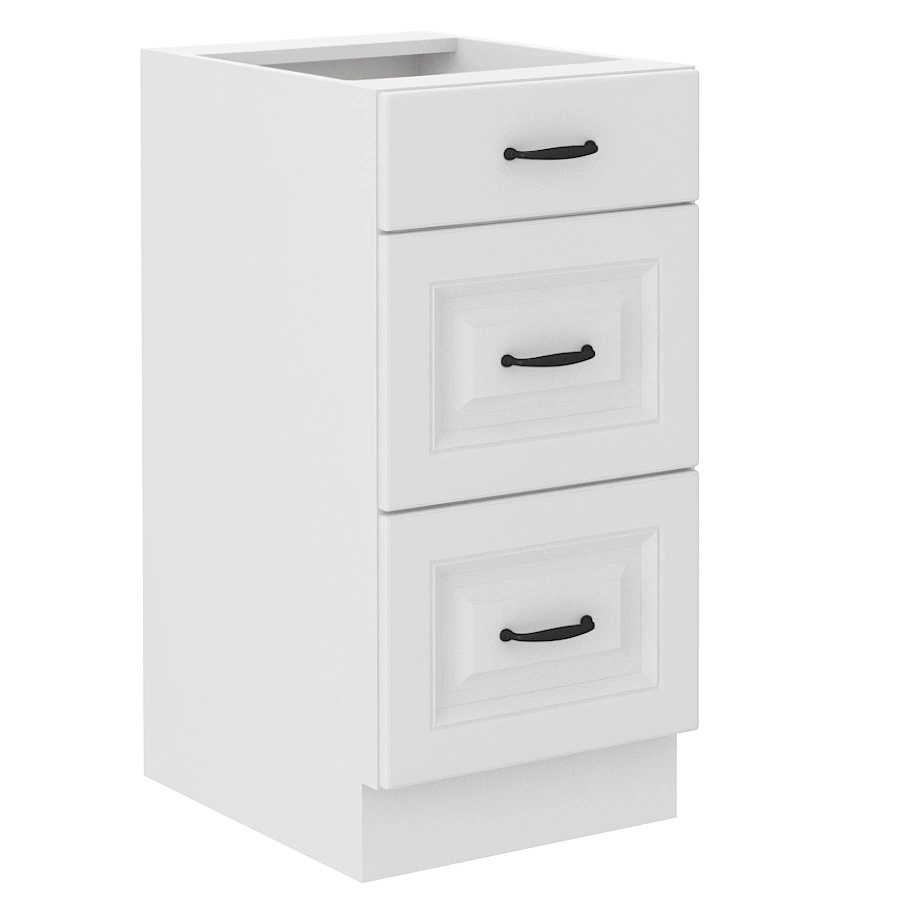 Kuchyňská skříňka se zásuvkami Snow v bílé barvě patří do kategorie modulárního kuchyňského nábytku, ze kterého můžete vytvořit libovolné sestavy.