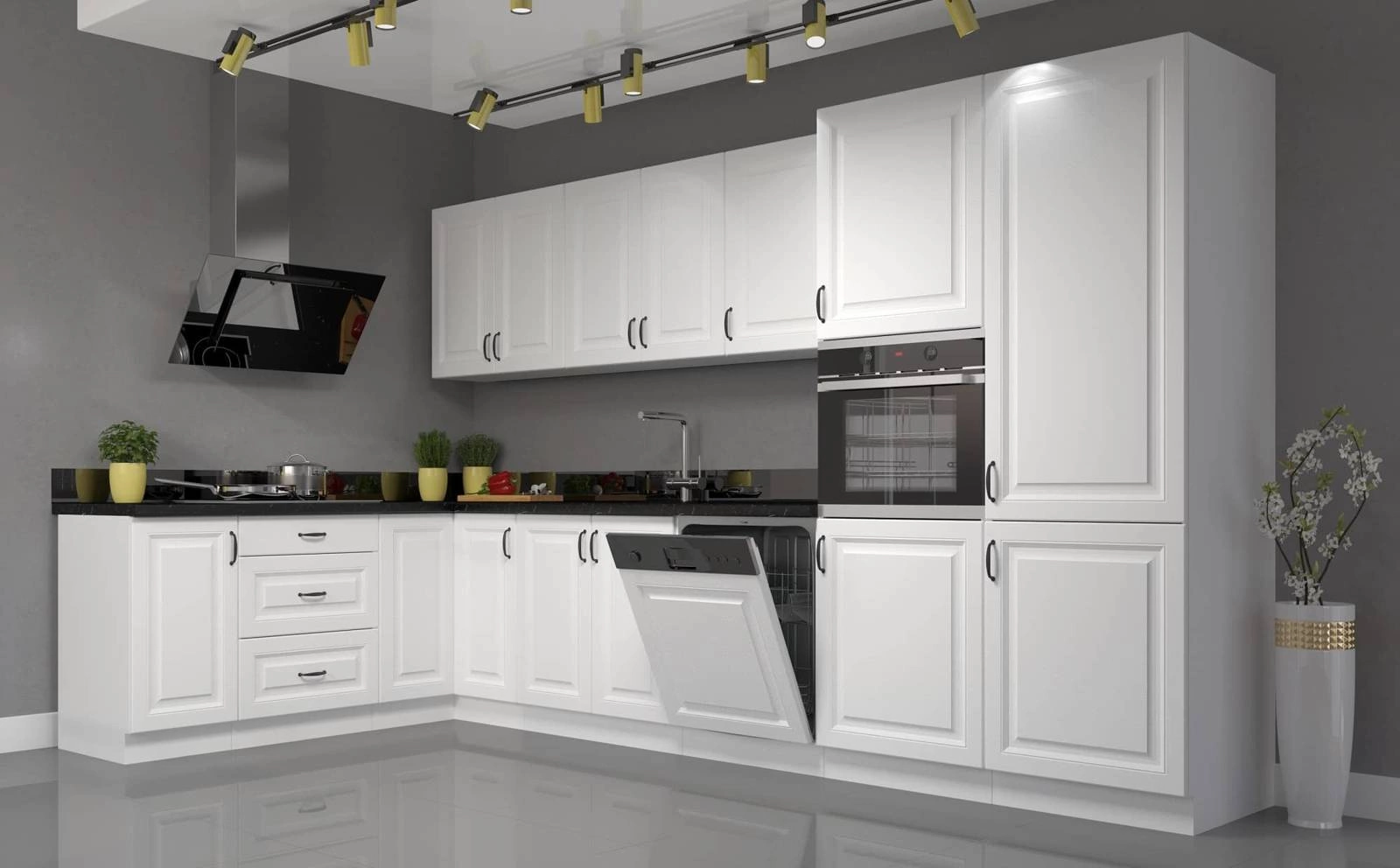 Přední strana kuchyňské nástěnné skříňky v bílé barvě je vyrobena z mDF desky a skončil s stylové frézování. Hrana čela kuchyňské skříňky je chráněna dýhou ABS, která má dvě funkce. Je to zabezpečení proti vlhkosti a chrání proti náhodnému poškození.