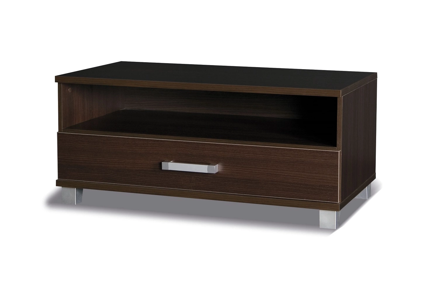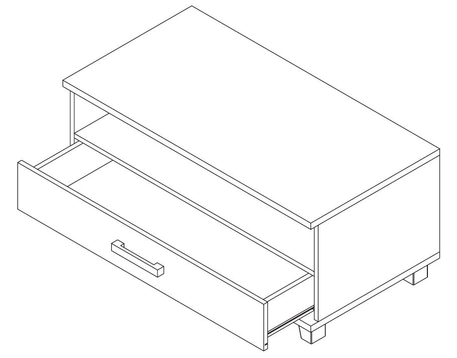 Skříňka pod televizor je vyrobena z 1 zásuvkou a prostor s s policí, zatímco druhá skříňka RTV má 2 zásuvky.