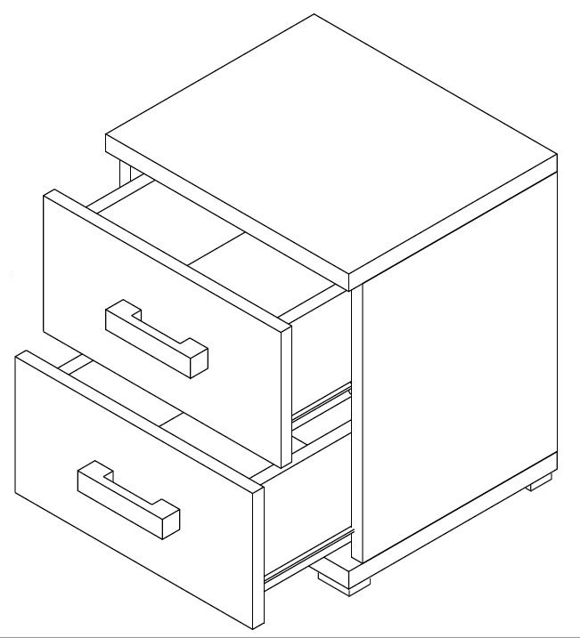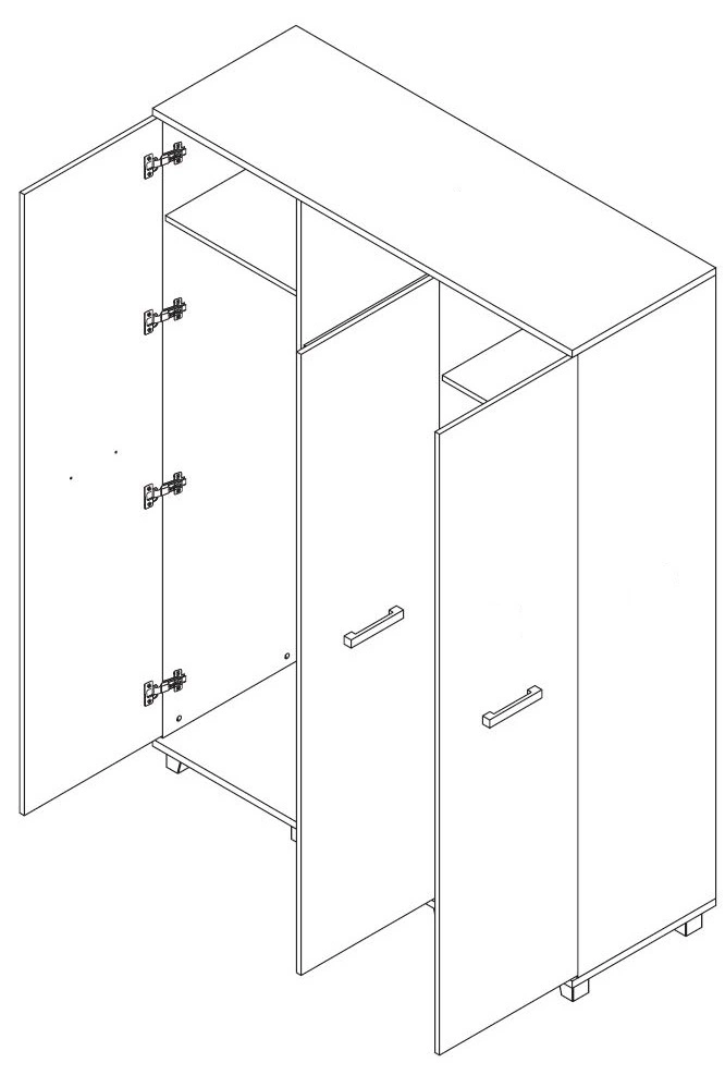 Skříň je vyrobena z 3 výklopné dveře o cílové rovince matt. Skříň Maximus je rozdělena na část s tyčemi i díl s policemi. Komoda má 2 výklopná dvířka a 4 otevřené části. Zásuvky v nočních stolcích a toaletním stolku se vysouvají na válečkových pojezdech.